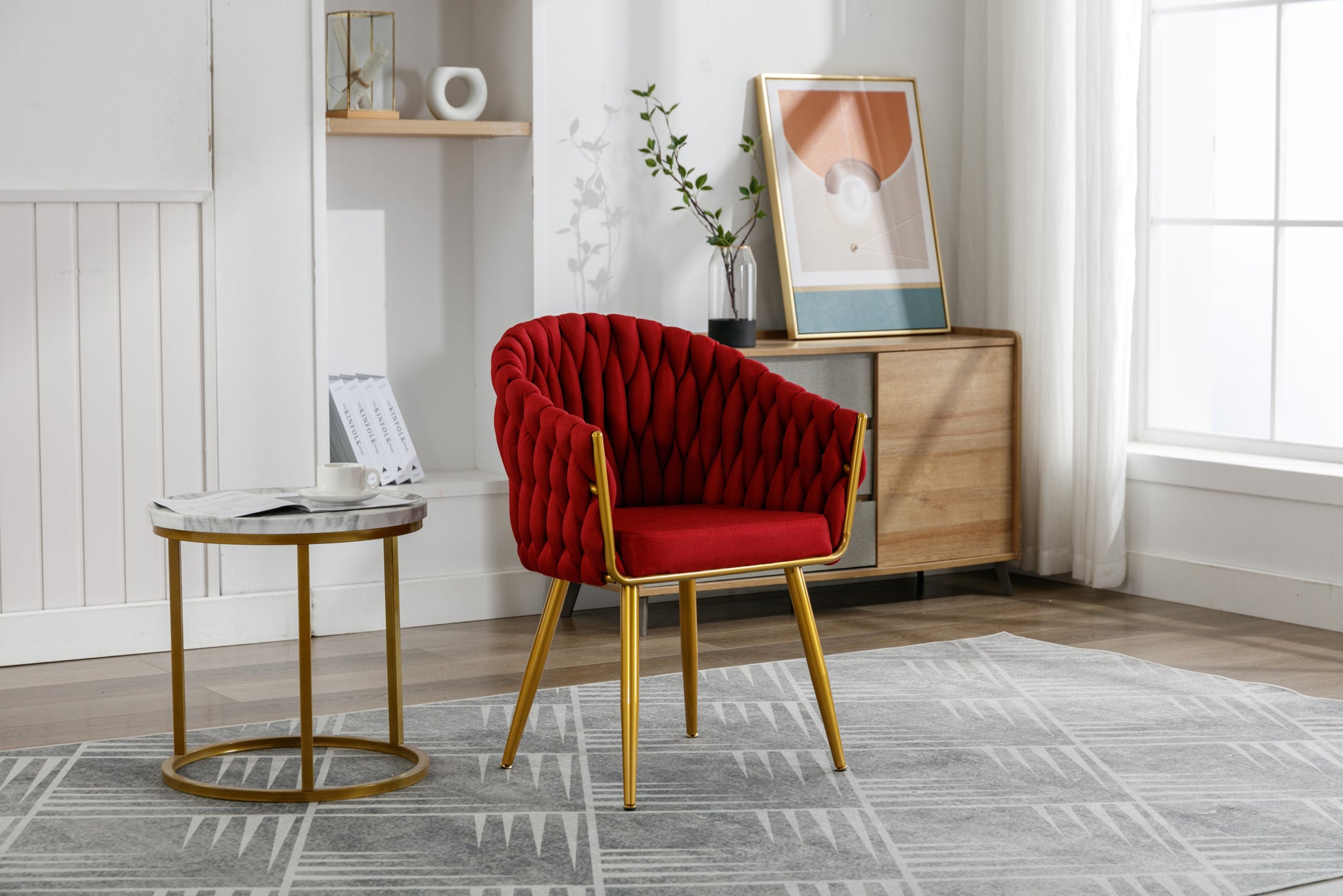 Handwoven Modern Chairs, Casual Chairs, Universal Foot Nails, Metal Chair Legs With Pillows Red Red Primary Living Space Linen