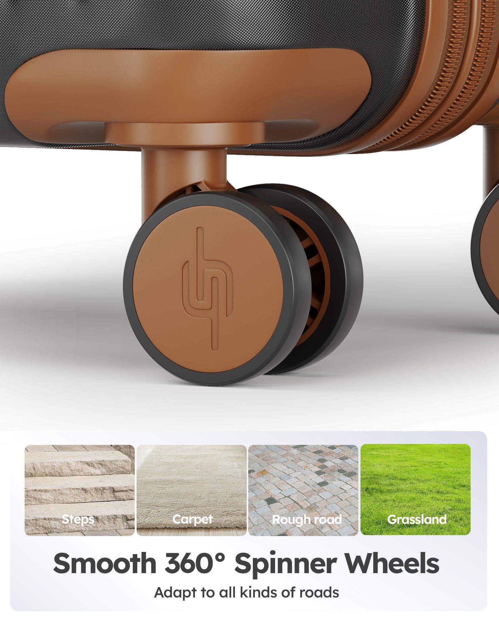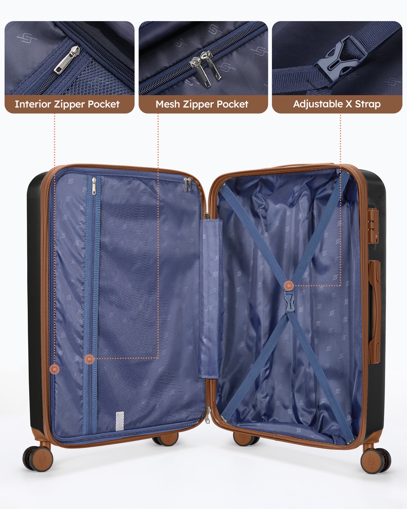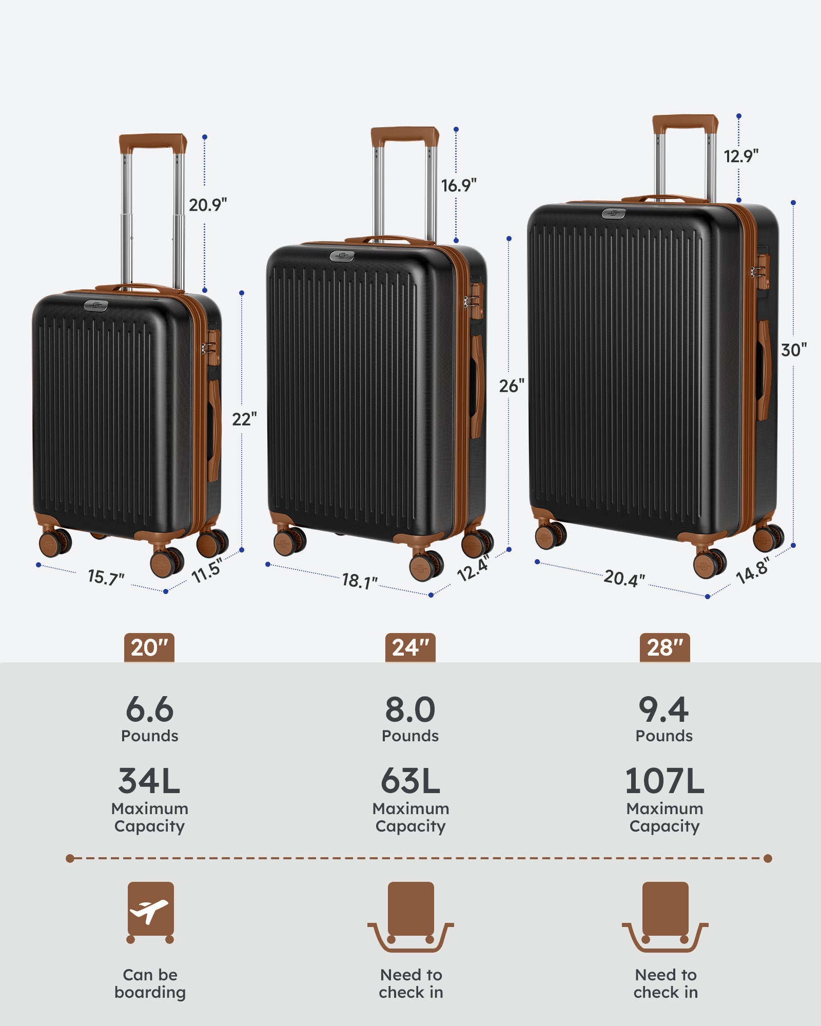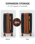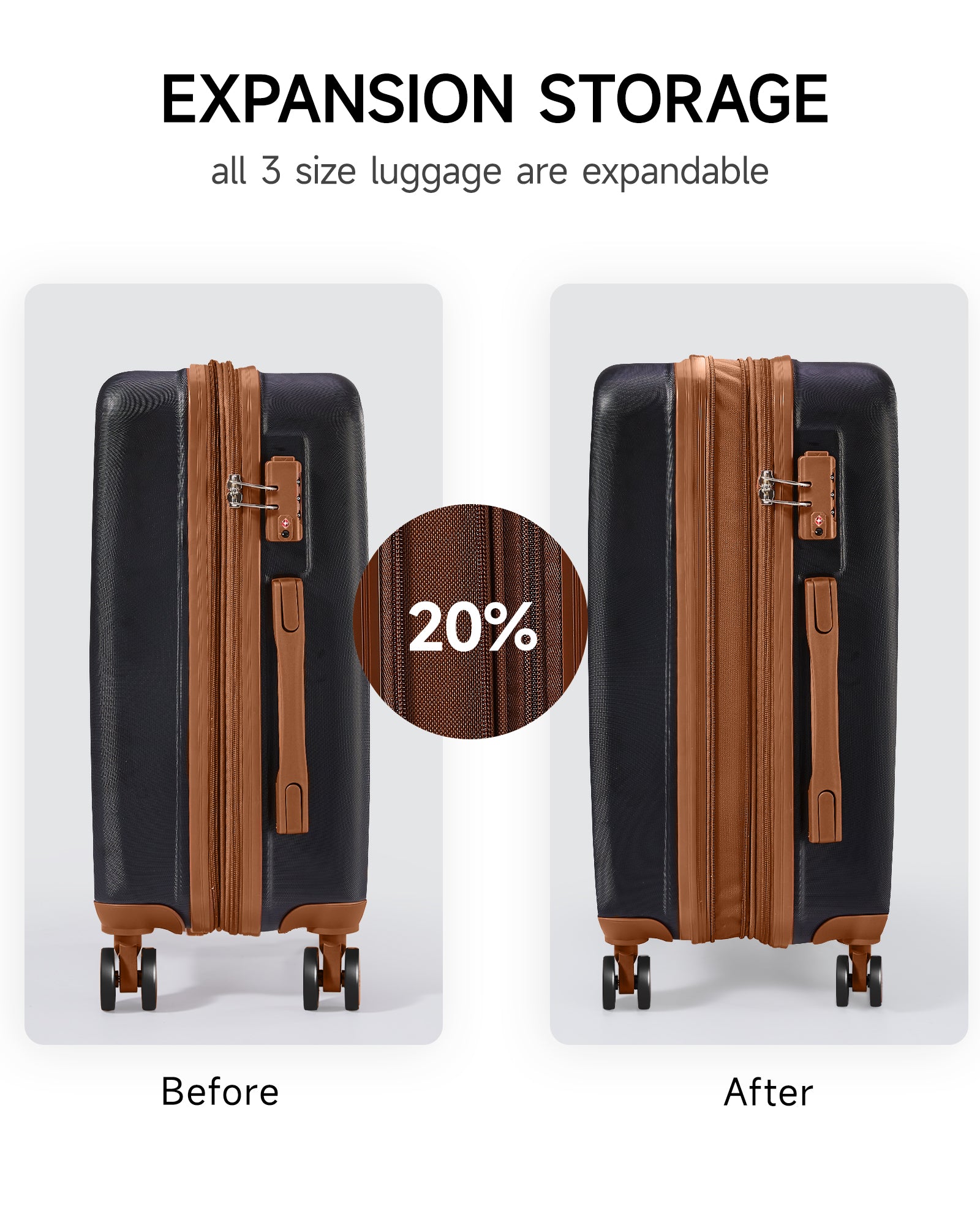 Hard Sided Expandable Luggage With Tsa Lock Travel Essentials Suitcase With Spinner Wheels 28" Black Brown Abs