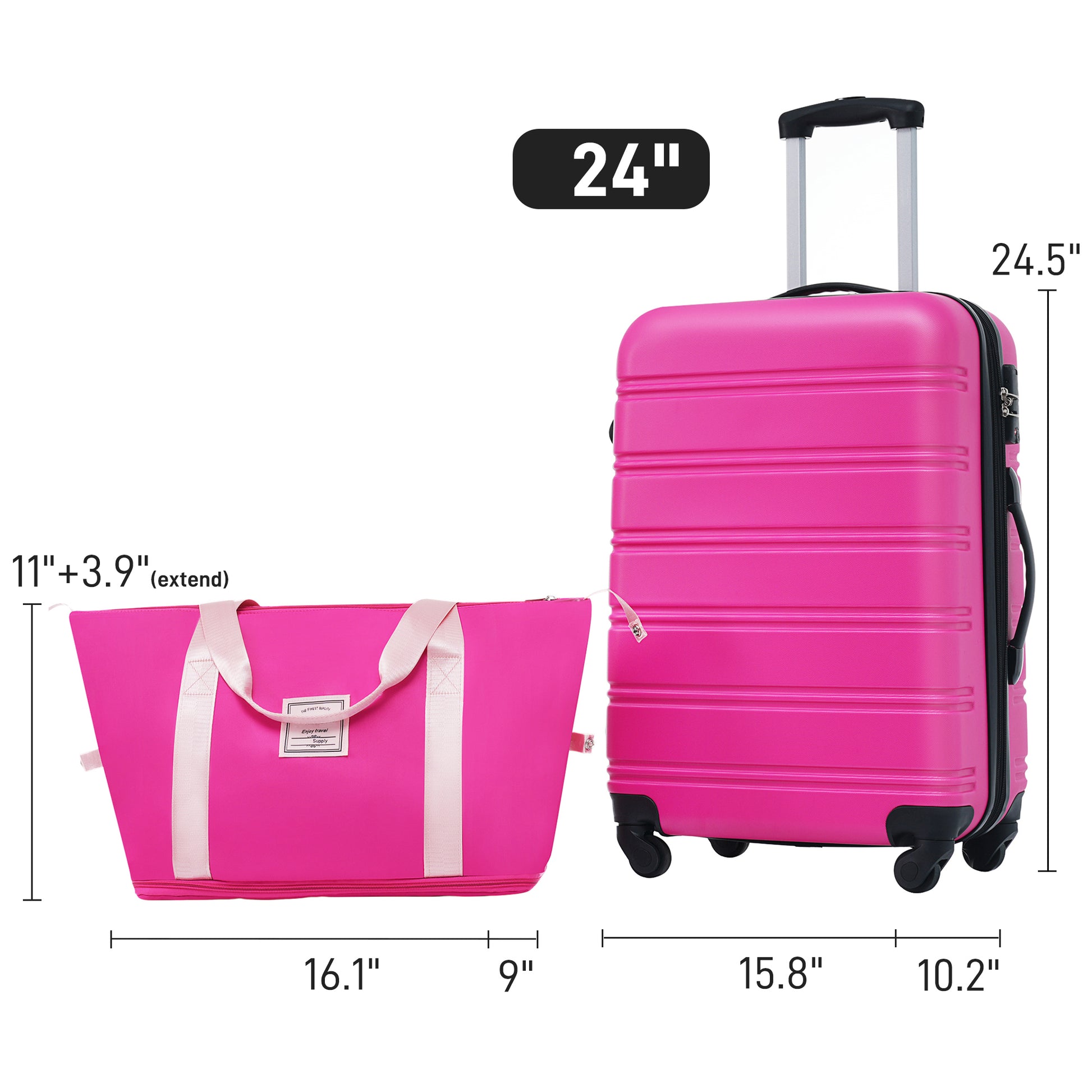 Hardshell Luggage Sets 24Inches Bag Spinner Suitcase With Tsa Lock Lightweight Pink Abs