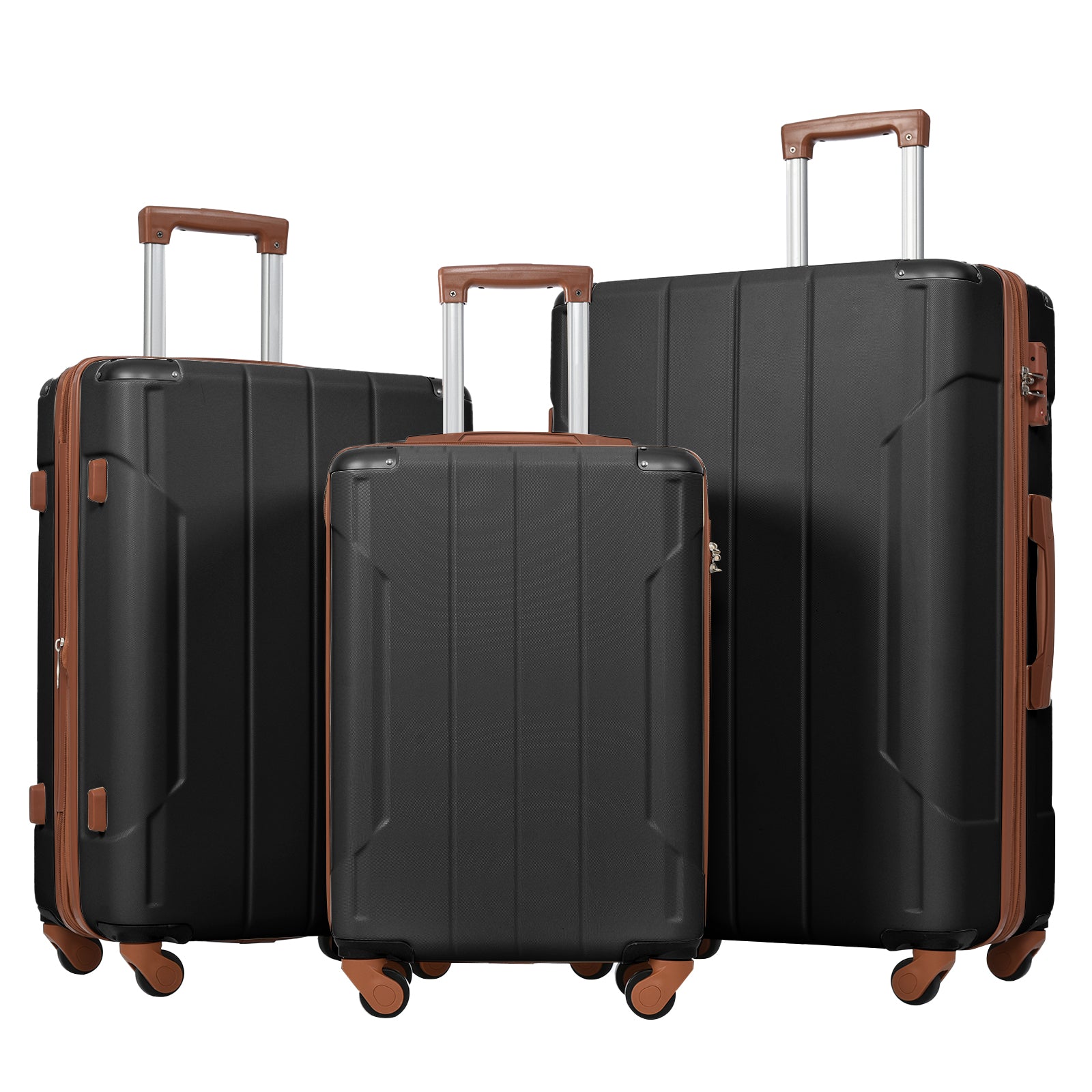 Hardshell Luggage Sets 3 Pcs Spinner Suitcase With Tsa Lock Lightweight 20''24''28'' Black Brown Abs