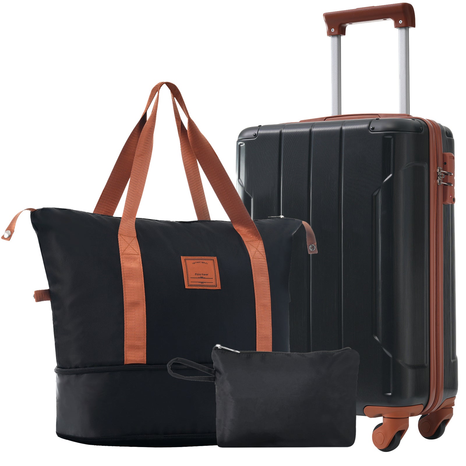 Hardshell Luggage Sets 3 Piece Carry On Suitcases With Wheels, Tsa Lock For Men Women, Black Brown 20In Black Brown Abs