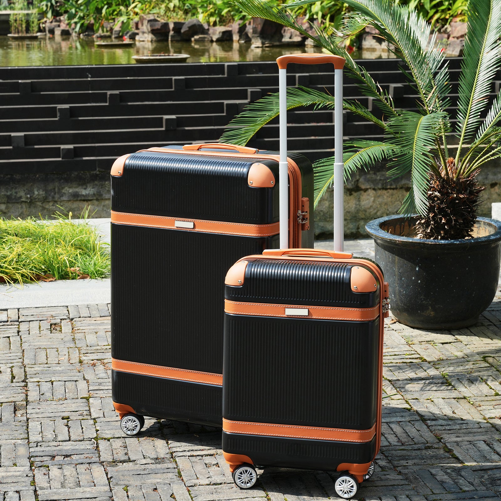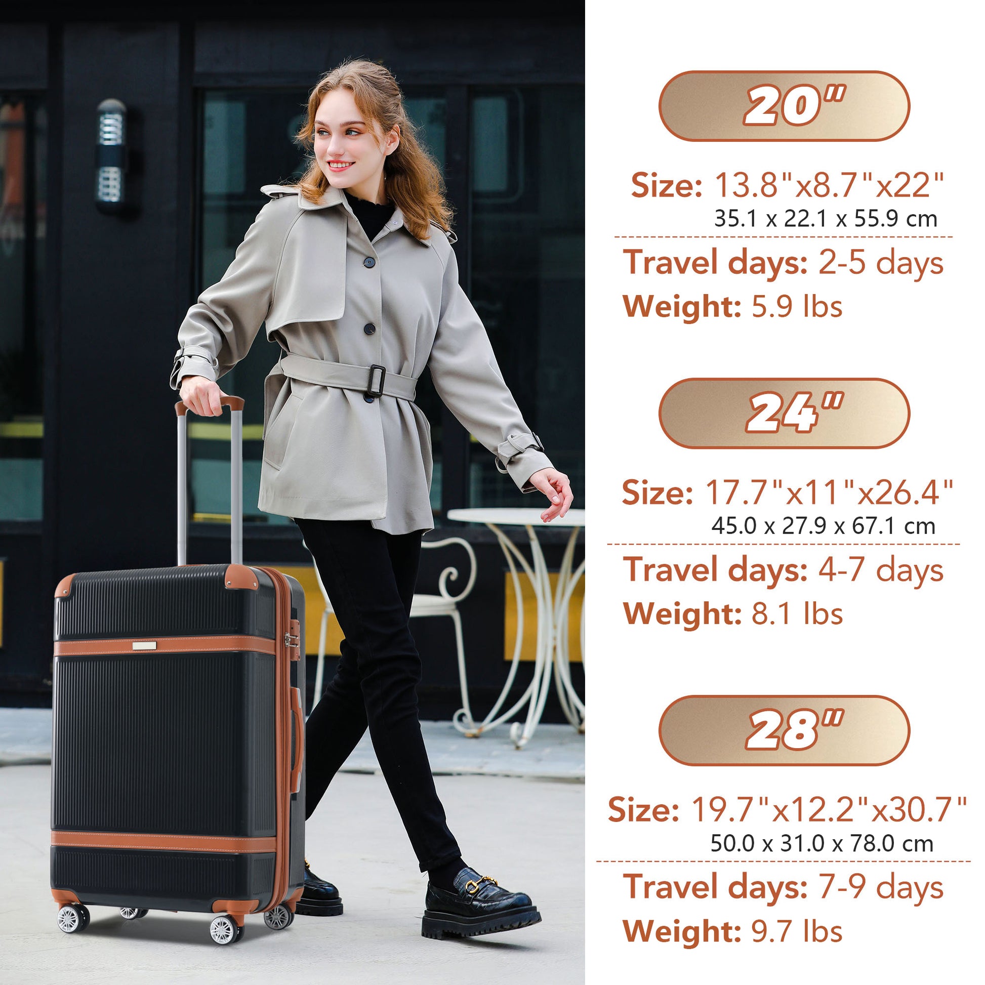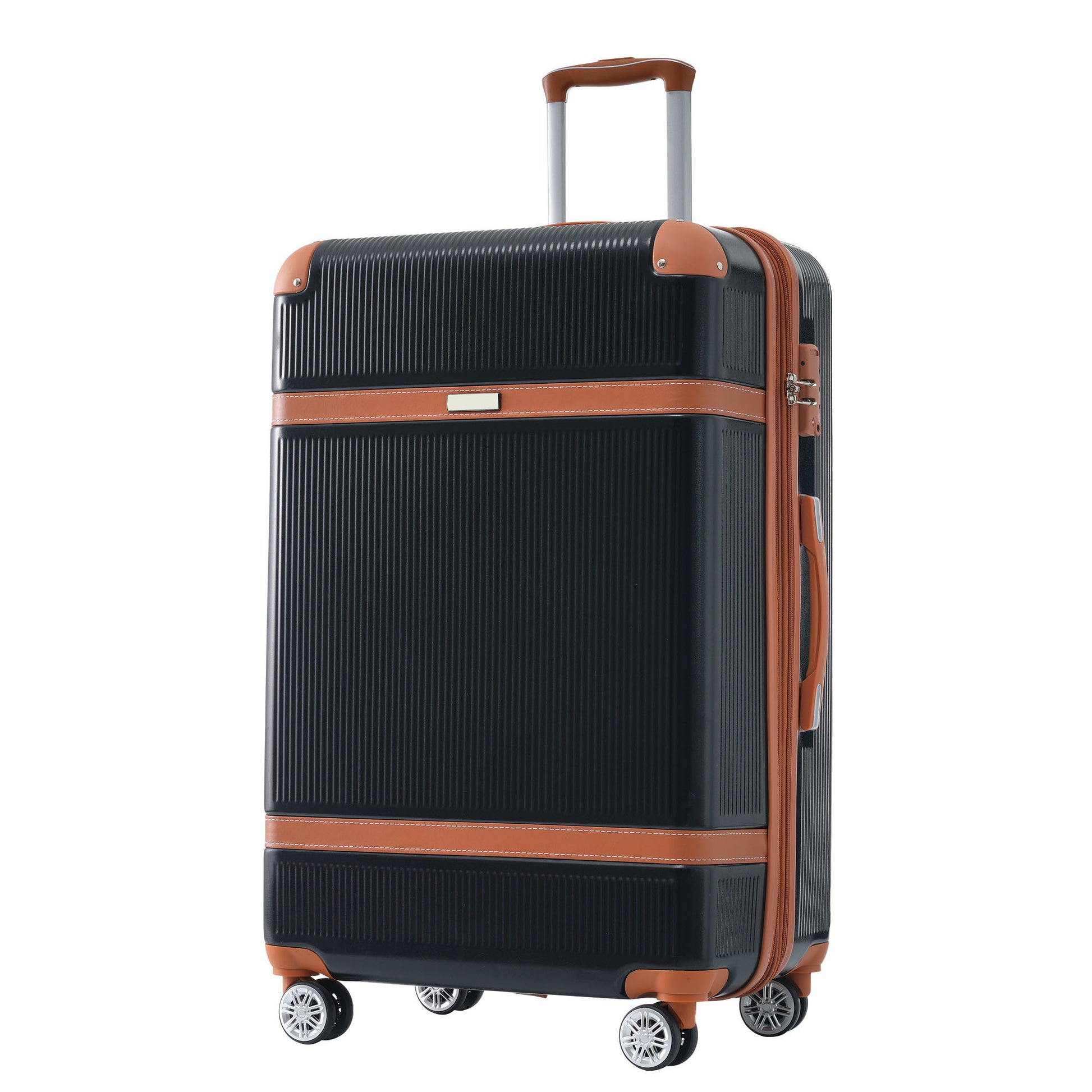 Hardshell Luggage Sets 3 Piece Double Spinner 8 Wheels Suitcase With Tsa Lock Lightweight 20''24''28'' Black Abs