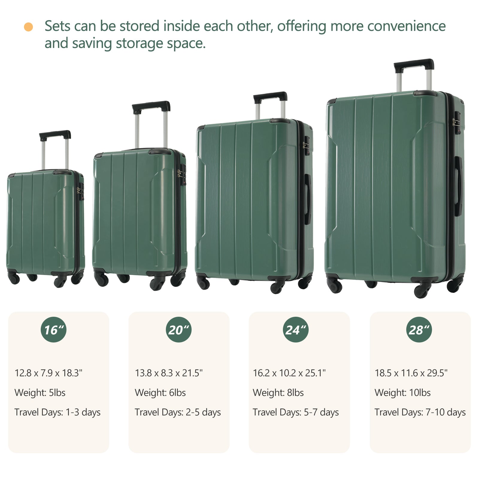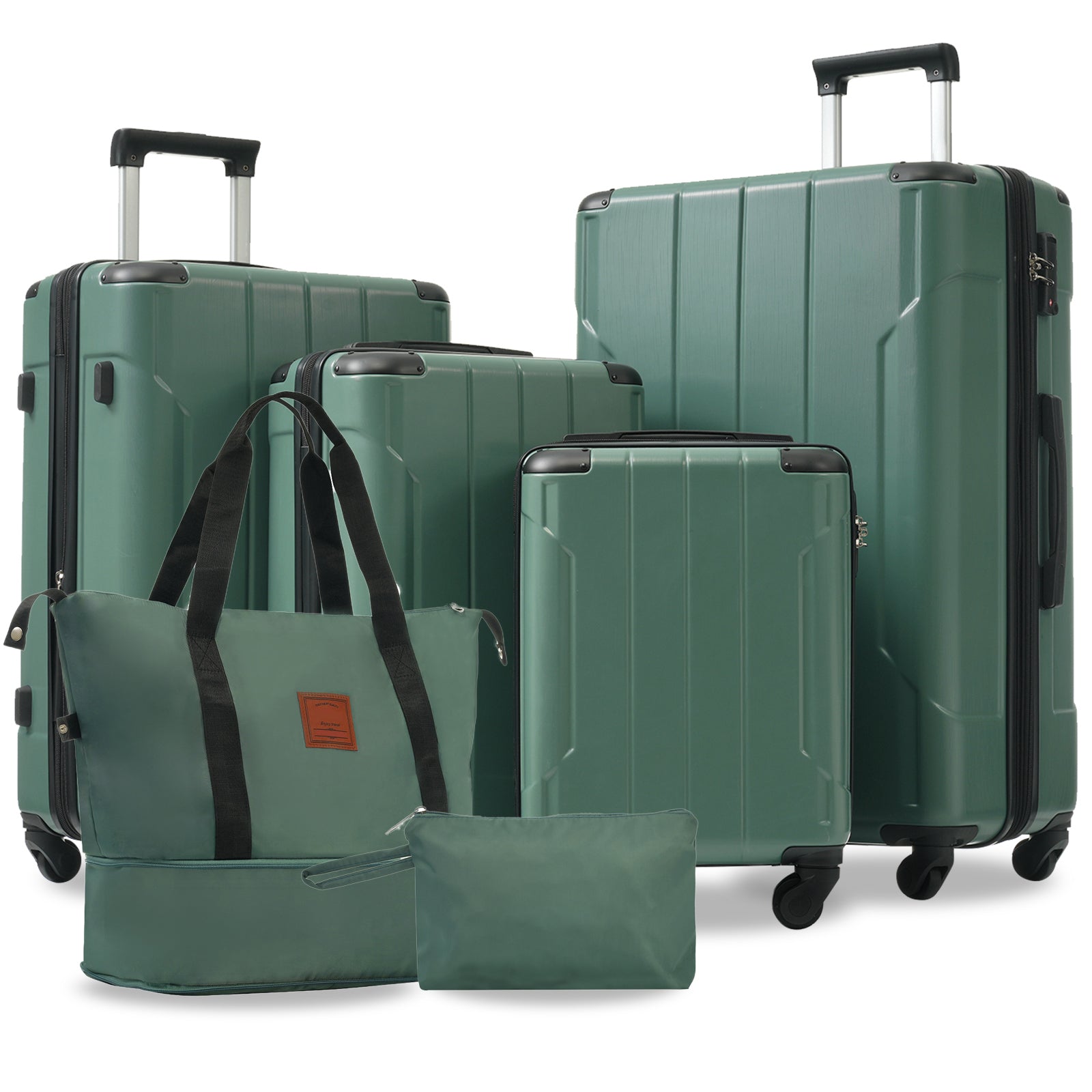 Hardshell Luggage Sets 6 Piece Suitcase Set, Expandable Lightweight Suitcases With Wheels, Tsa Lock For Men Women, Green Green Abs