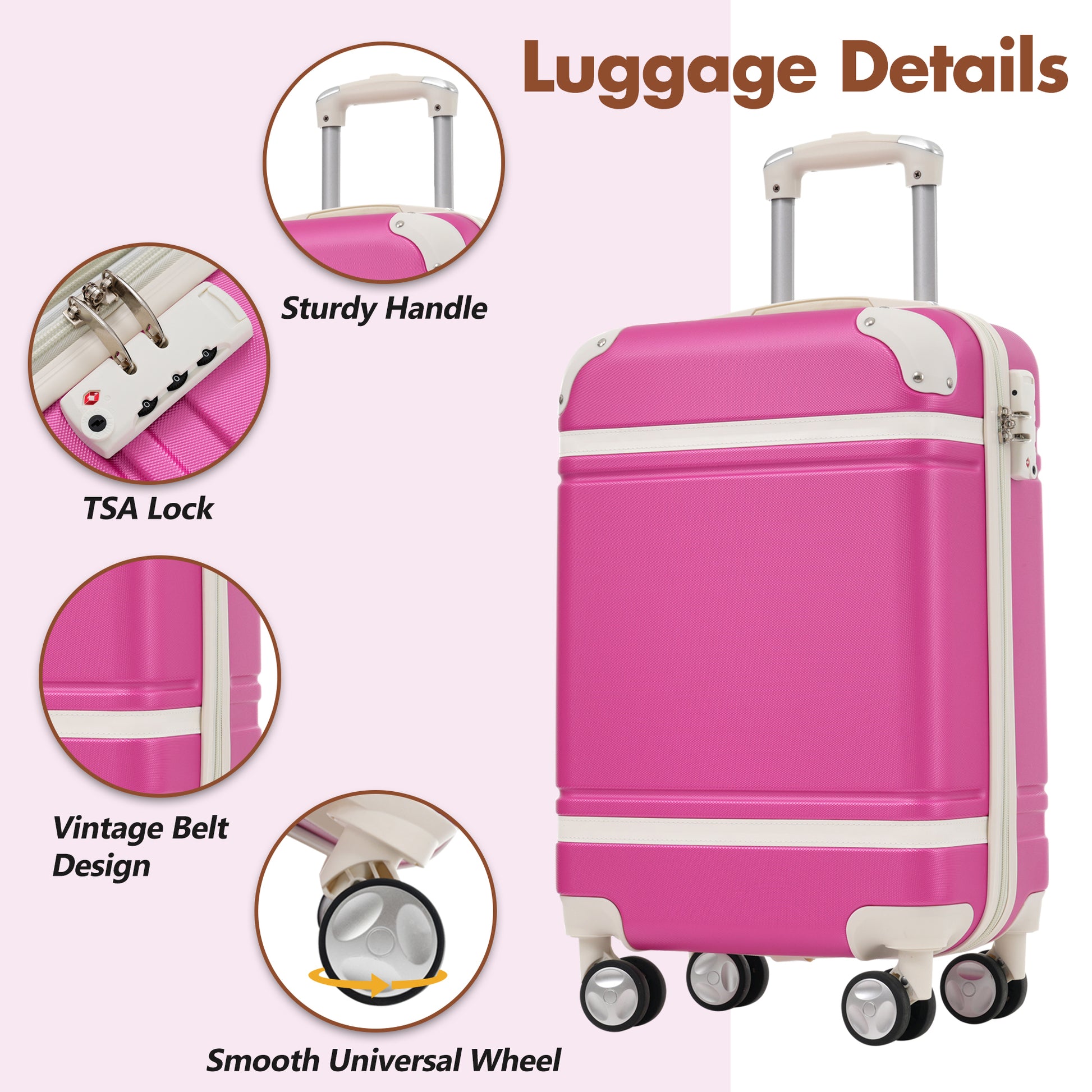 Hardshell Luggage Sets With Bags Carry On Suitcase Double Spinner Wheels With Tsa Lock ,Single Vintage Luggage 20 In,Pink Pink Abs