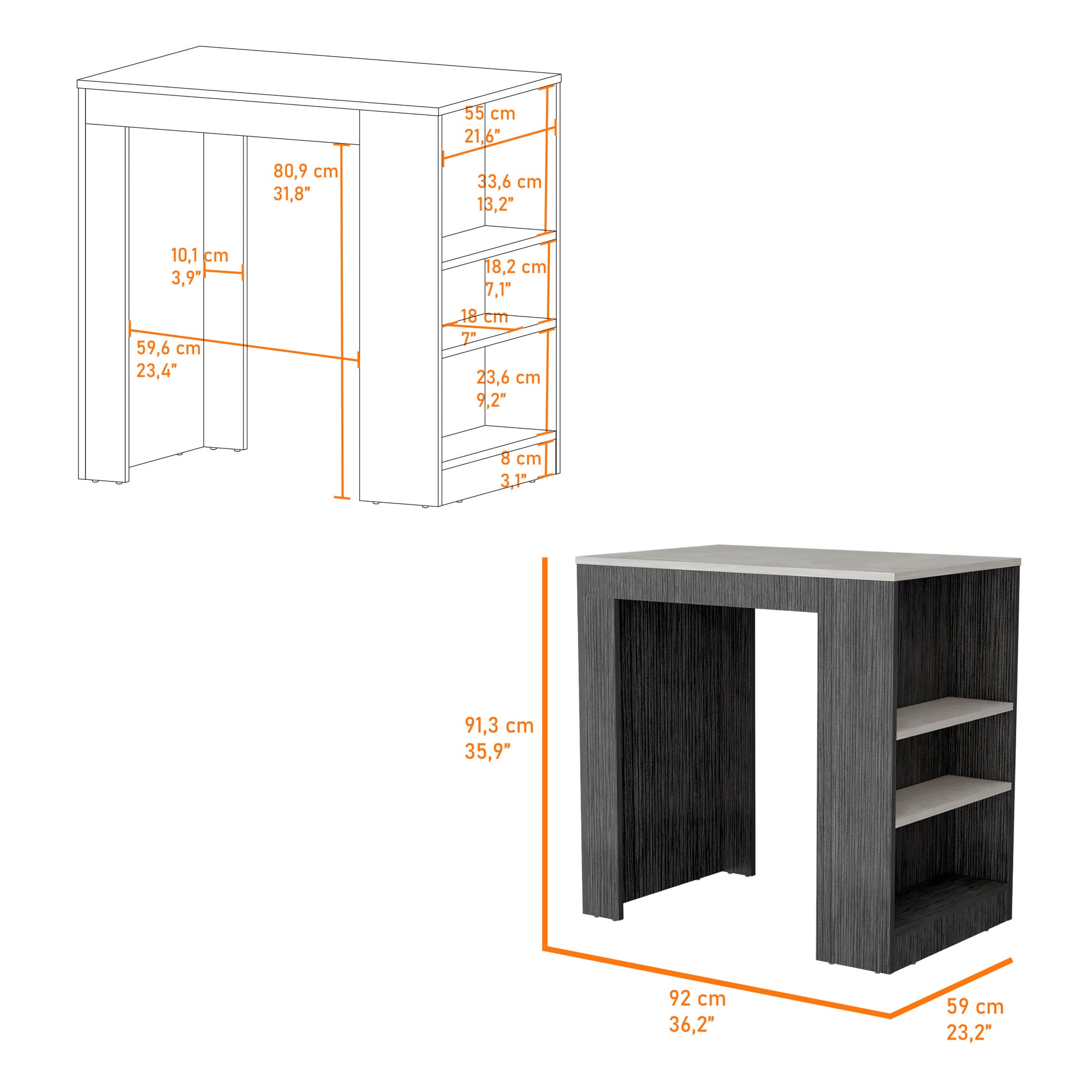 Harlan Kitchen Island, Counter Height Table Top With 3 Side Shelf Multicolor Kitchen Contemporary Rectangular Stationary Kitchen Islands Particle Board Engineered Wood