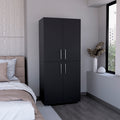 Hazel 70" High Four Door Armoire Wardrove Closet Cabinet, Six Shelves And Two Hanging Rods, Bedroom Clothes Storage Cabinet Organizer Black Black Bedroom Modern Particle Board
