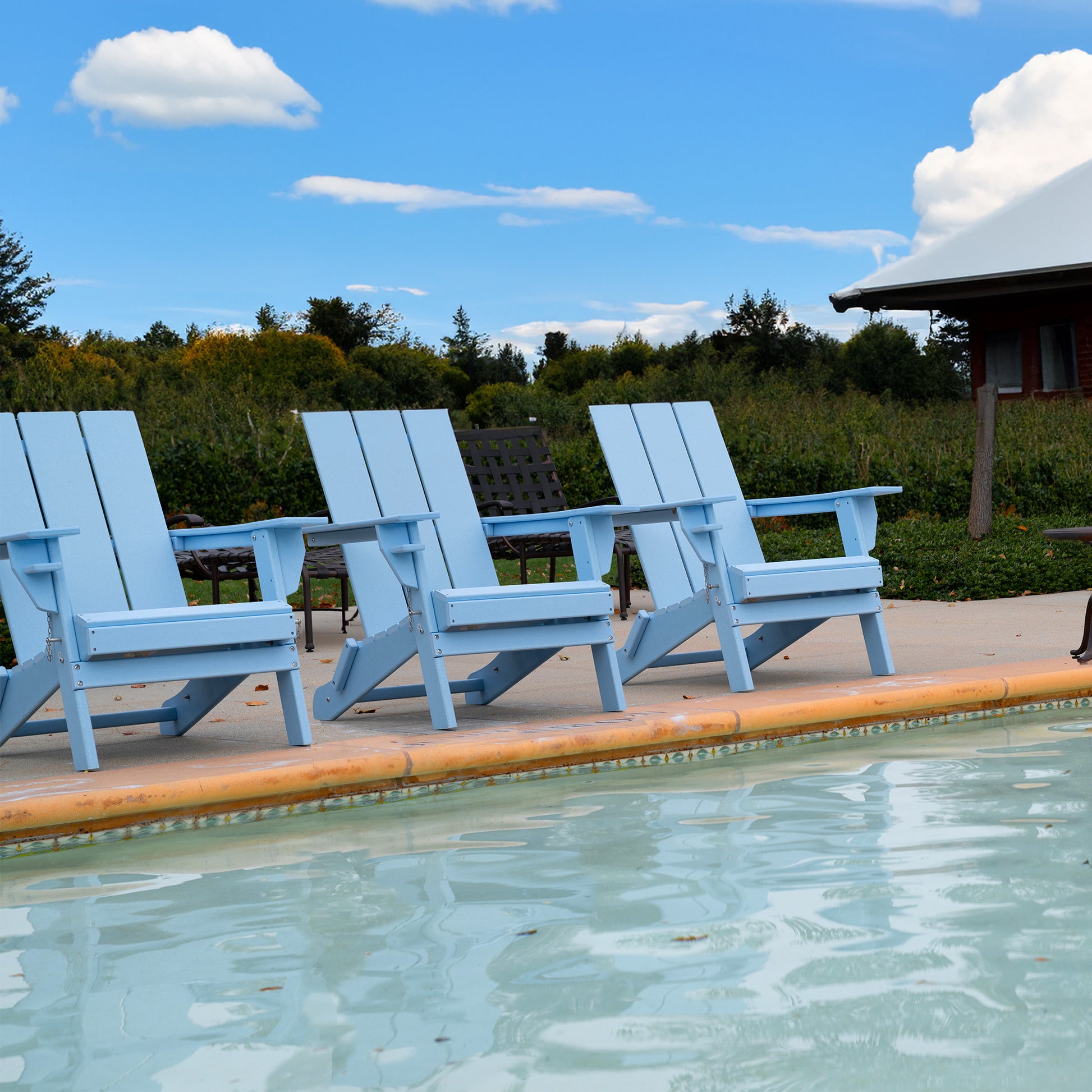 Hdpe Modern Folding Adirondack Chair, Ultra Durable Weather Resistant Design, Easy Folding With No Pins Needed, 300 Lb Capacity, Aqua Blue Aqua Blue Hdpe