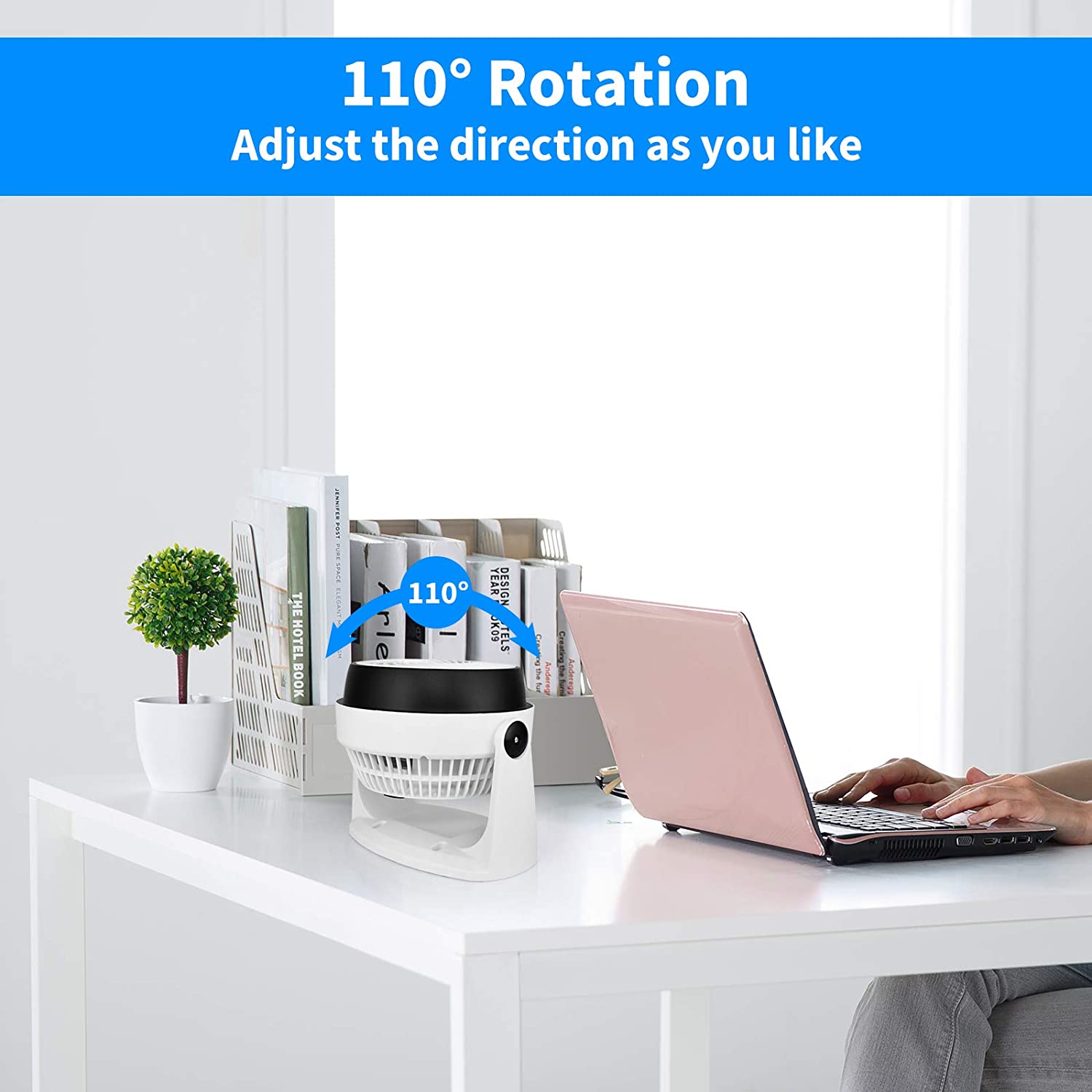 Healsmart 8" Table Fan Tabletop Air Circulator Fan 3Speed Control 110 Rotation White Abs