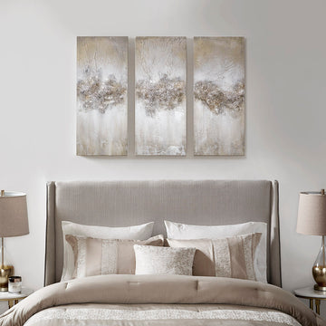 Heavily Embellished 3 Piece Canvas Wall Art Set Taupe Mdf
