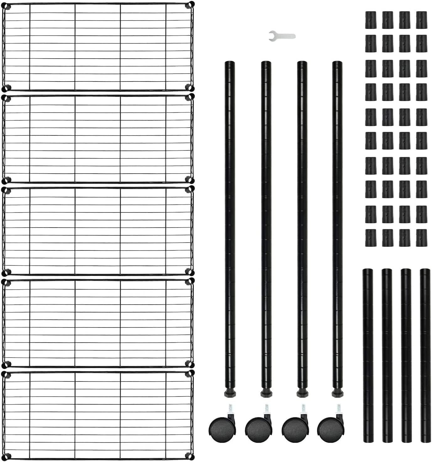 Heavy Duty 5 Shelf Shelving Unit 1250Lb Capacity, 29.92" D X 13.98" W X 62.99" H, 5 Tier, Black Black Steel