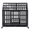 Heavy Duty Dog Cage Pet Crate With Roof Black Carbon Steel