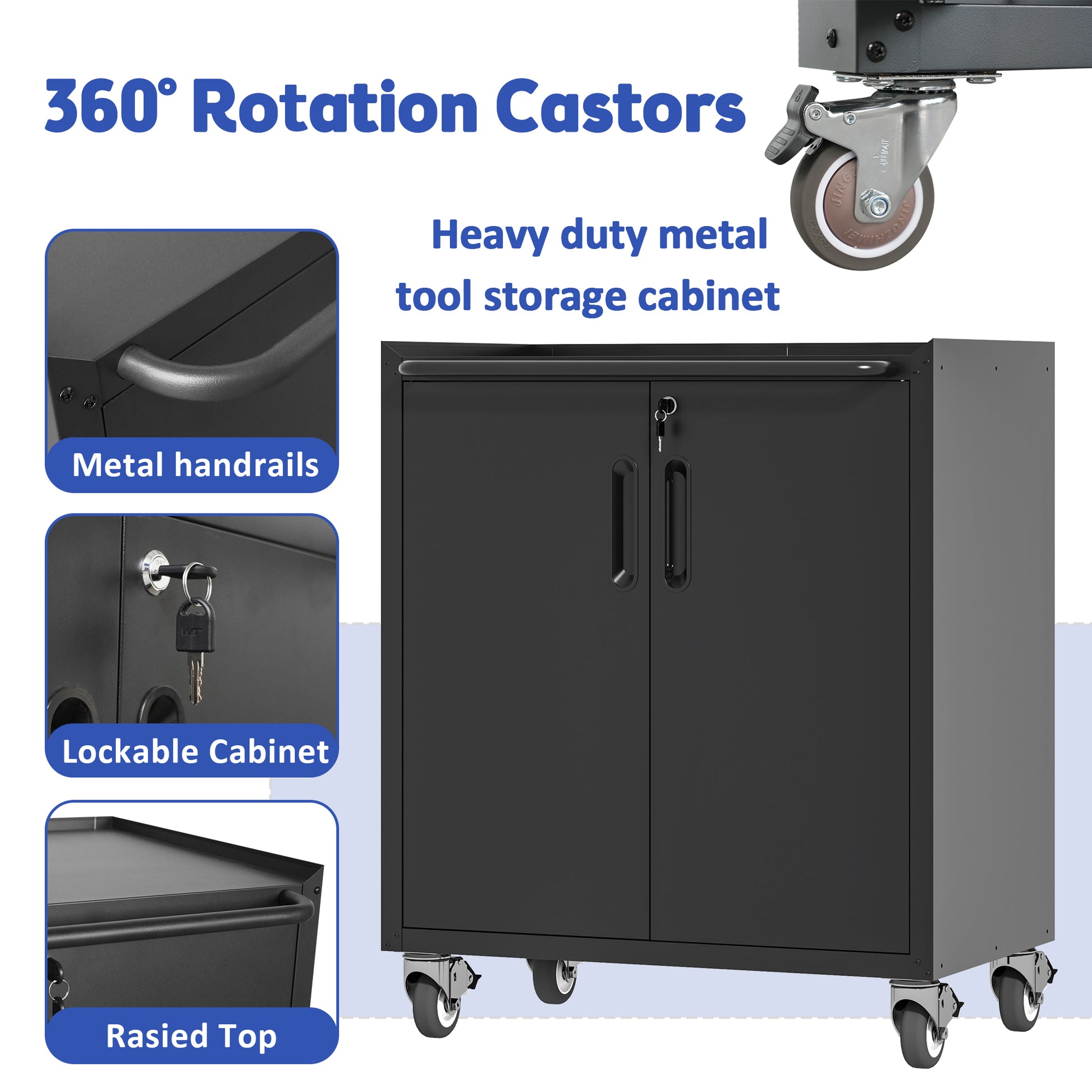 Heavy Duty Metal Garage Storage Cabinet With Wheels Sturdy And Durable Tool Storage Cabinet For Garage, Office, And Home Organizer Solutions Black Steel