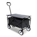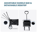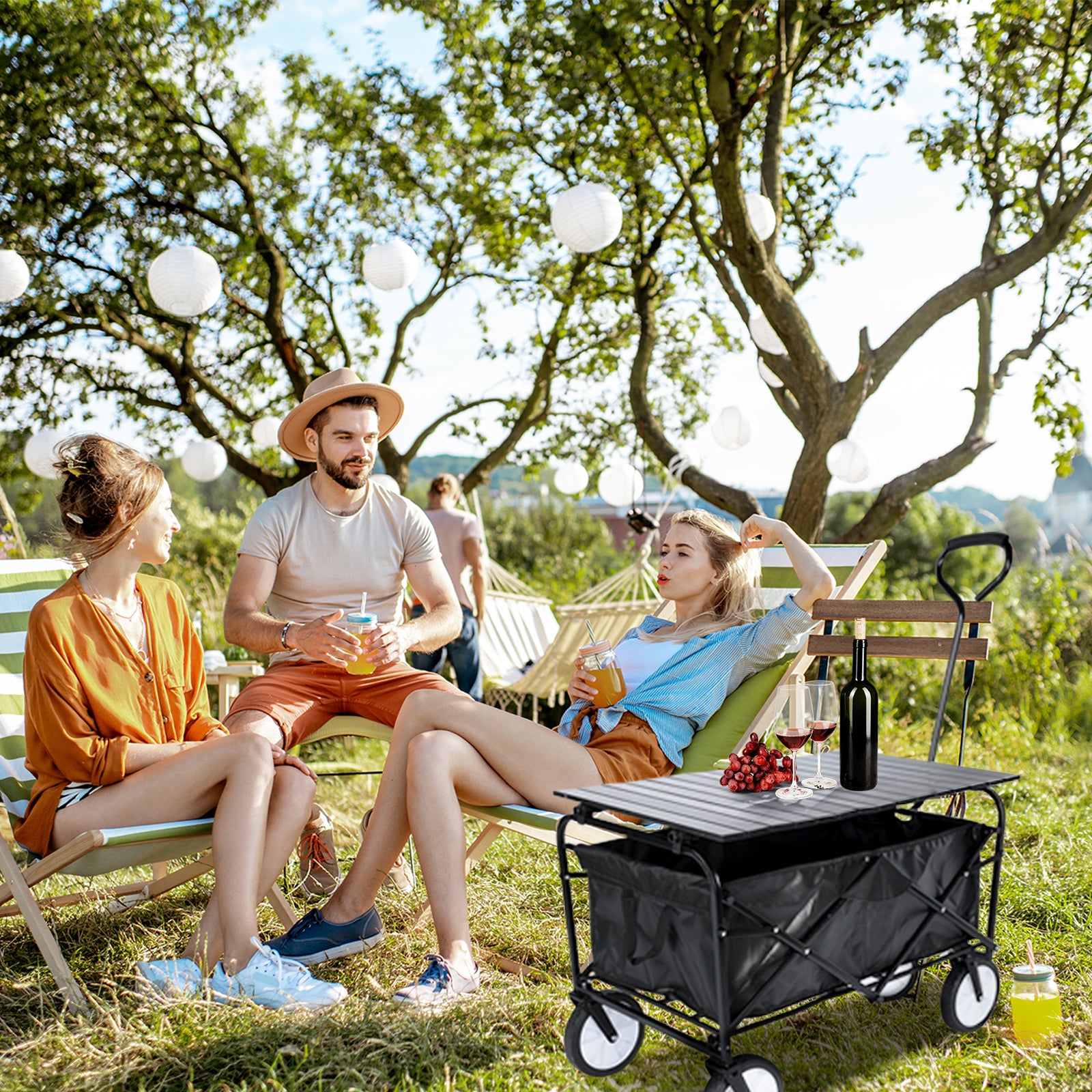 Heavy Duty Portable Folding Wagon And Collapsible Aluminum Alloy Table Combo Utility Outdoor Camping Cart With Universal Anti Slip Wheels & Adjustable Handle Along With Metal Board Desktop, Black Black Steel
