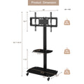 Height And Angle Adjustable Multi Function Tempered Glass Metal Frame Floor With Lockable Wheels Mobile Tv Stand, Lcd Plasma Tv Bracket 2 Tier Tempered Glass Shelves For Multiple Media Devices Black Glass