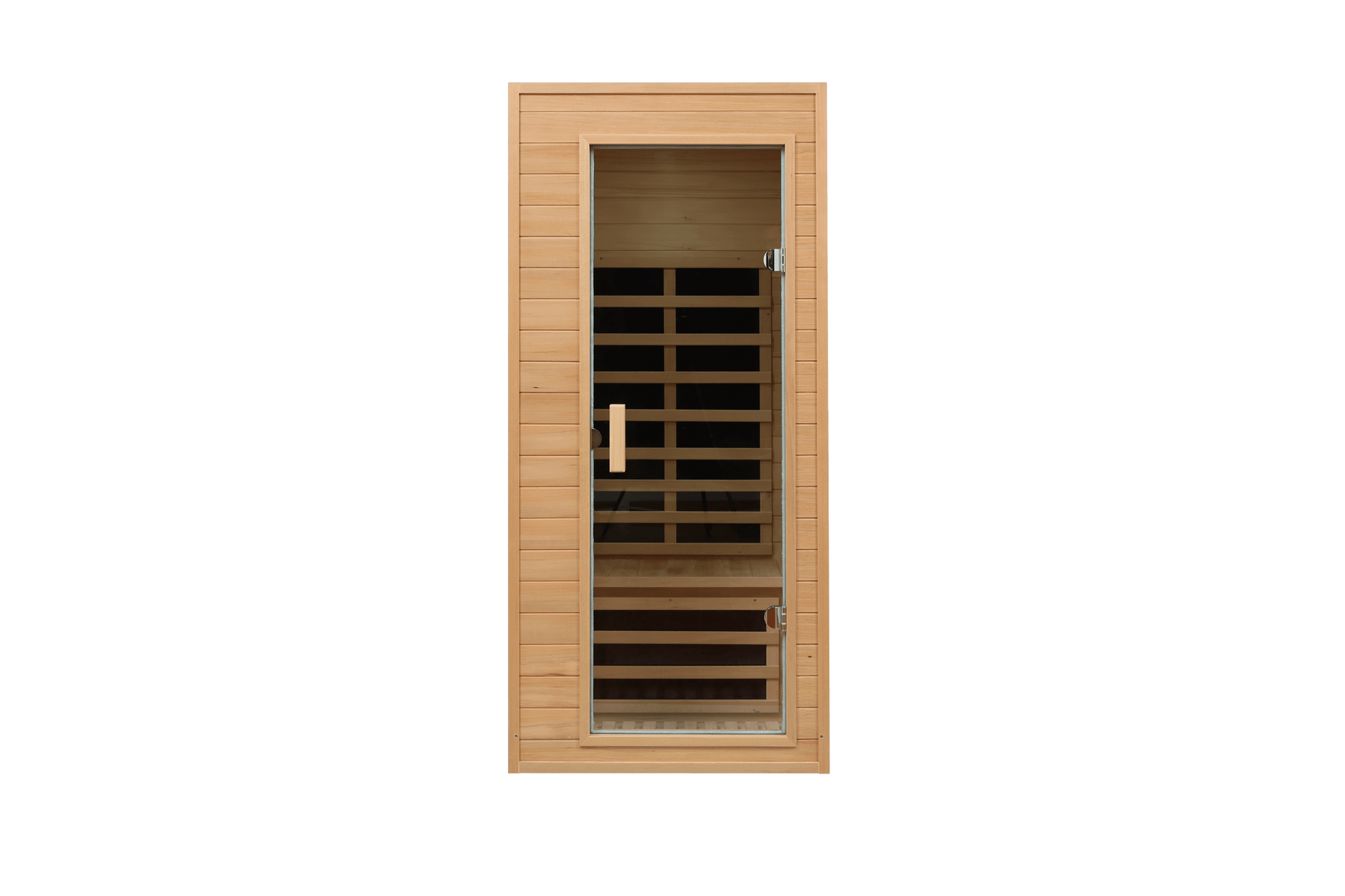 Hemlock One Person Far Infrared Roof Embedded Indoor Sauna Room Front & Rear Natural Metal & Wood