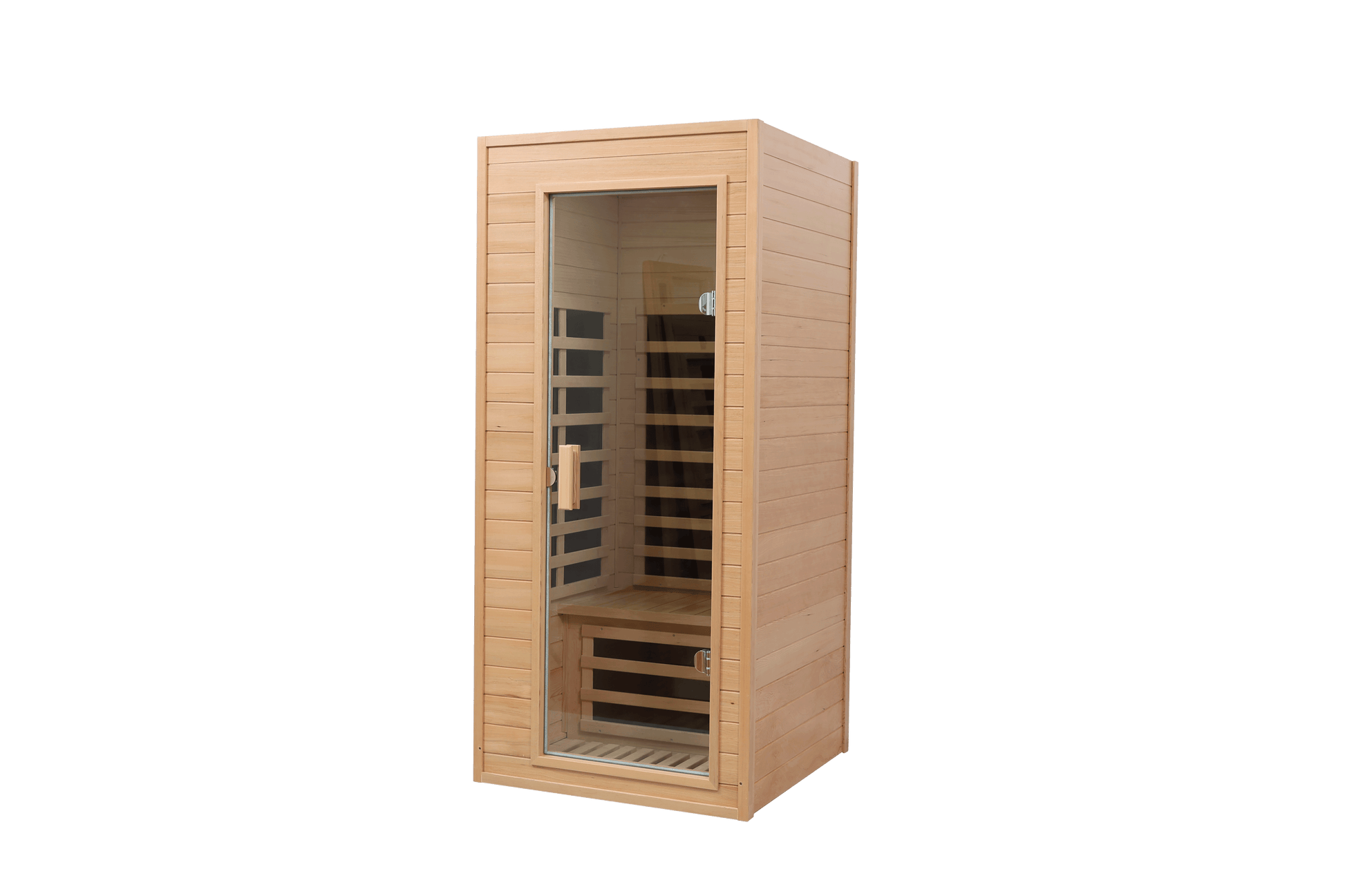 Hemlock One Person Far Infrared Roof Embedded Indoor Sauna Room Natural Metal & Wood