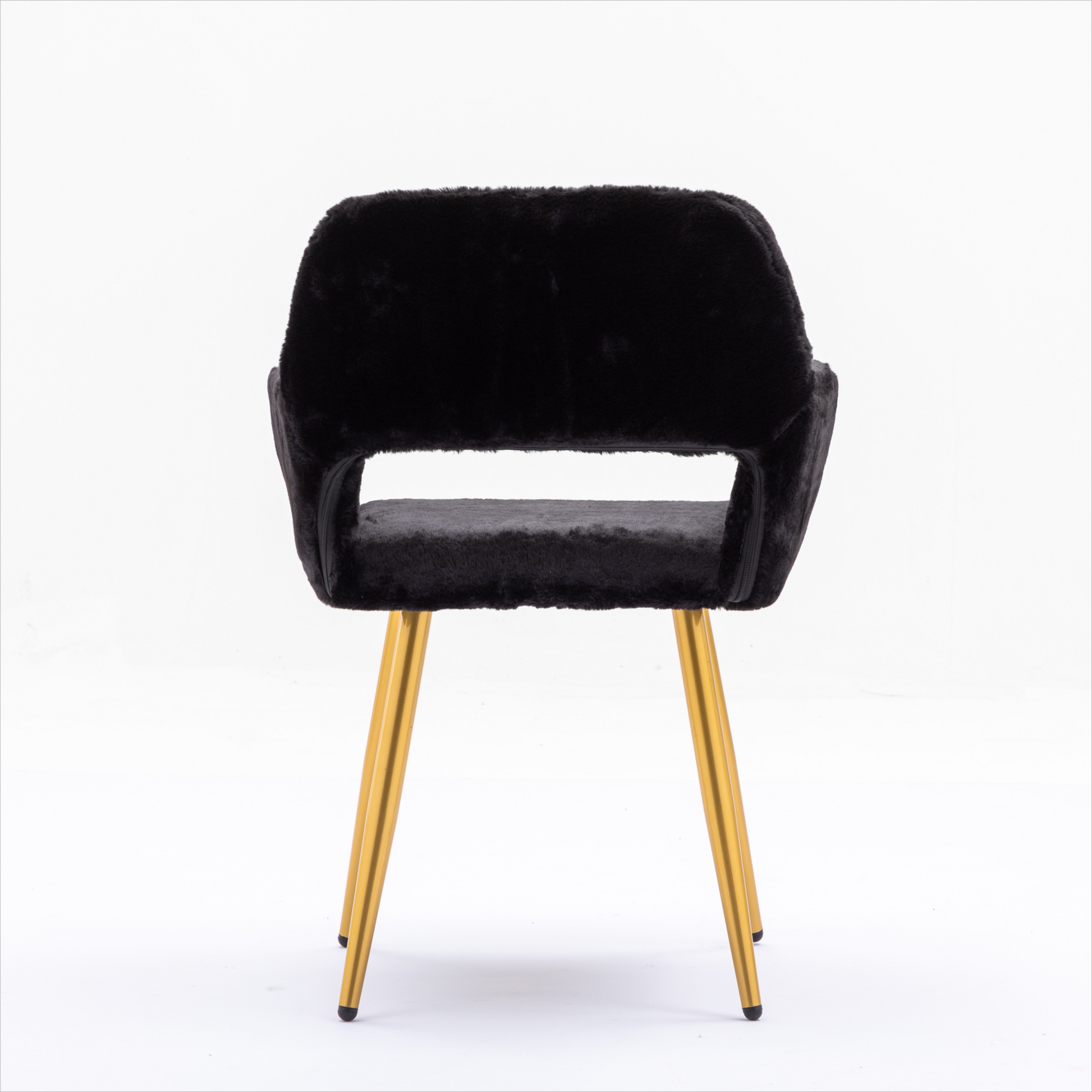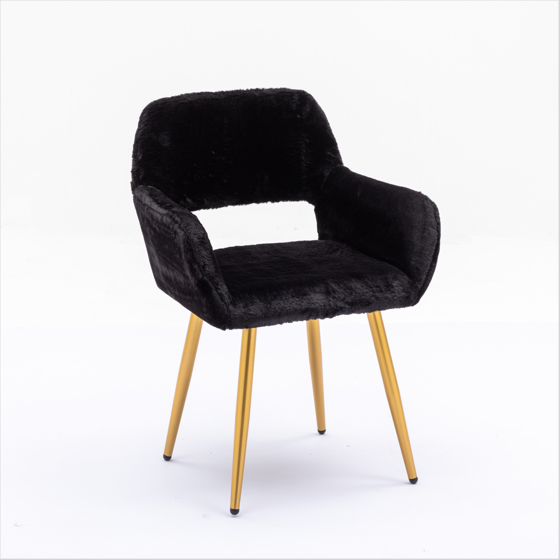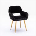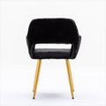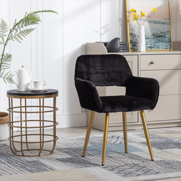 Hengming Dining Chairs With Faux Fur, Mid Century Side Chairs With Solid Painting Steel Leg For Dining Room Black Faux Fur