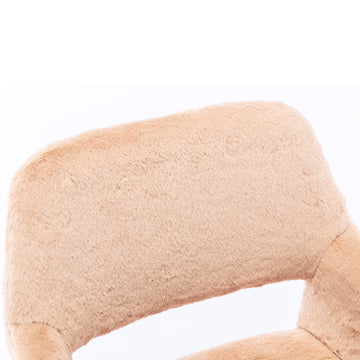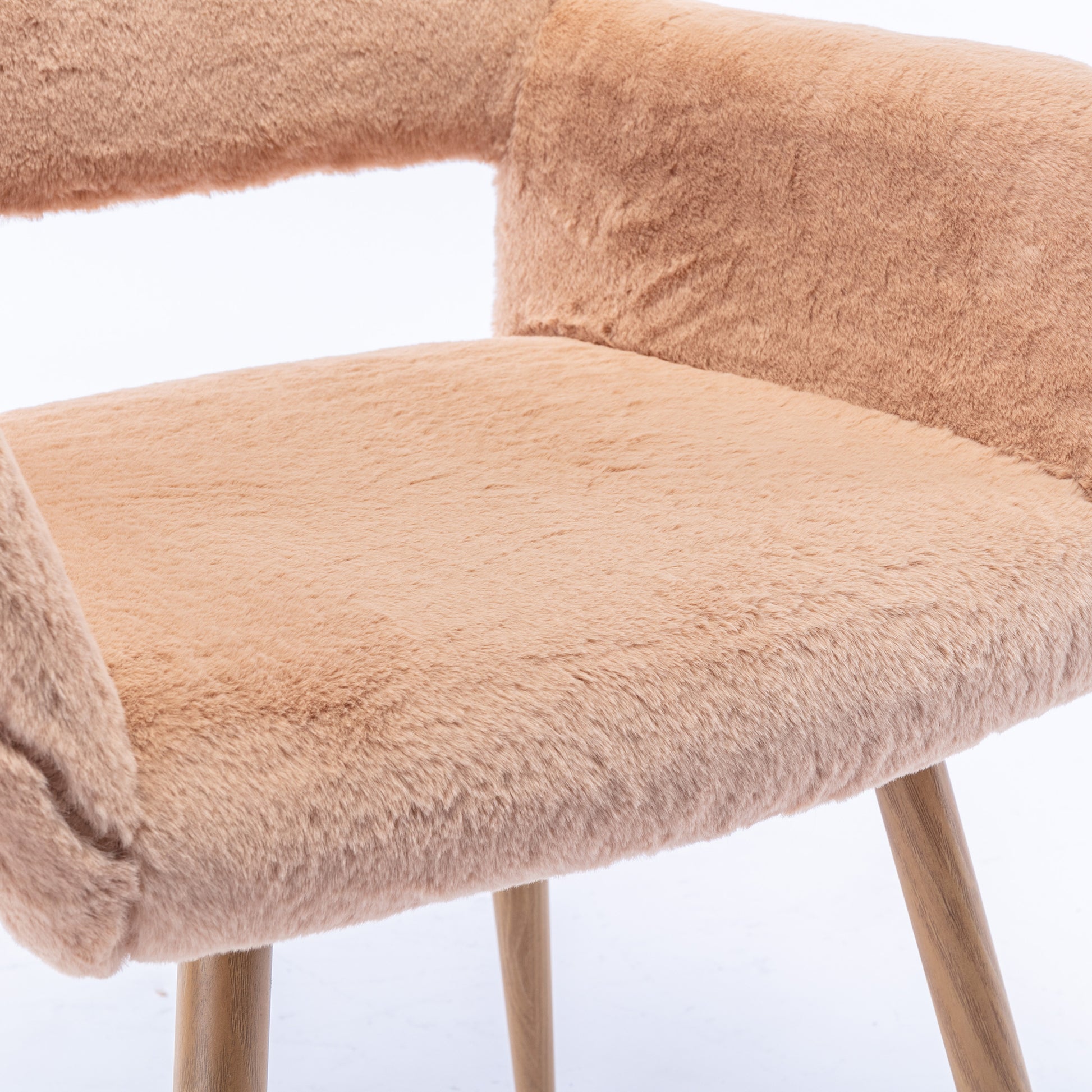 Hengming Dining Chairs With Faux Fur, Mid Century Side Chairs With Solid Painting Steel Leg For Dining Room Camel Faux Fur