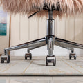 Hengming Modern Faux Fur Home Office Chair, Fluffy Chair For Girls, Makeup Vanity Chair Pink Steel