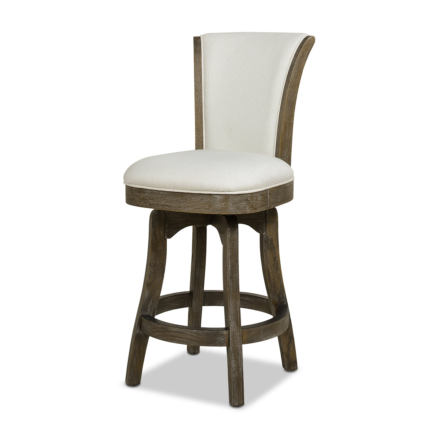 Henry 27 Armless Swivel Counter Height Bar Stool, Natural White Linen White Foam Linen