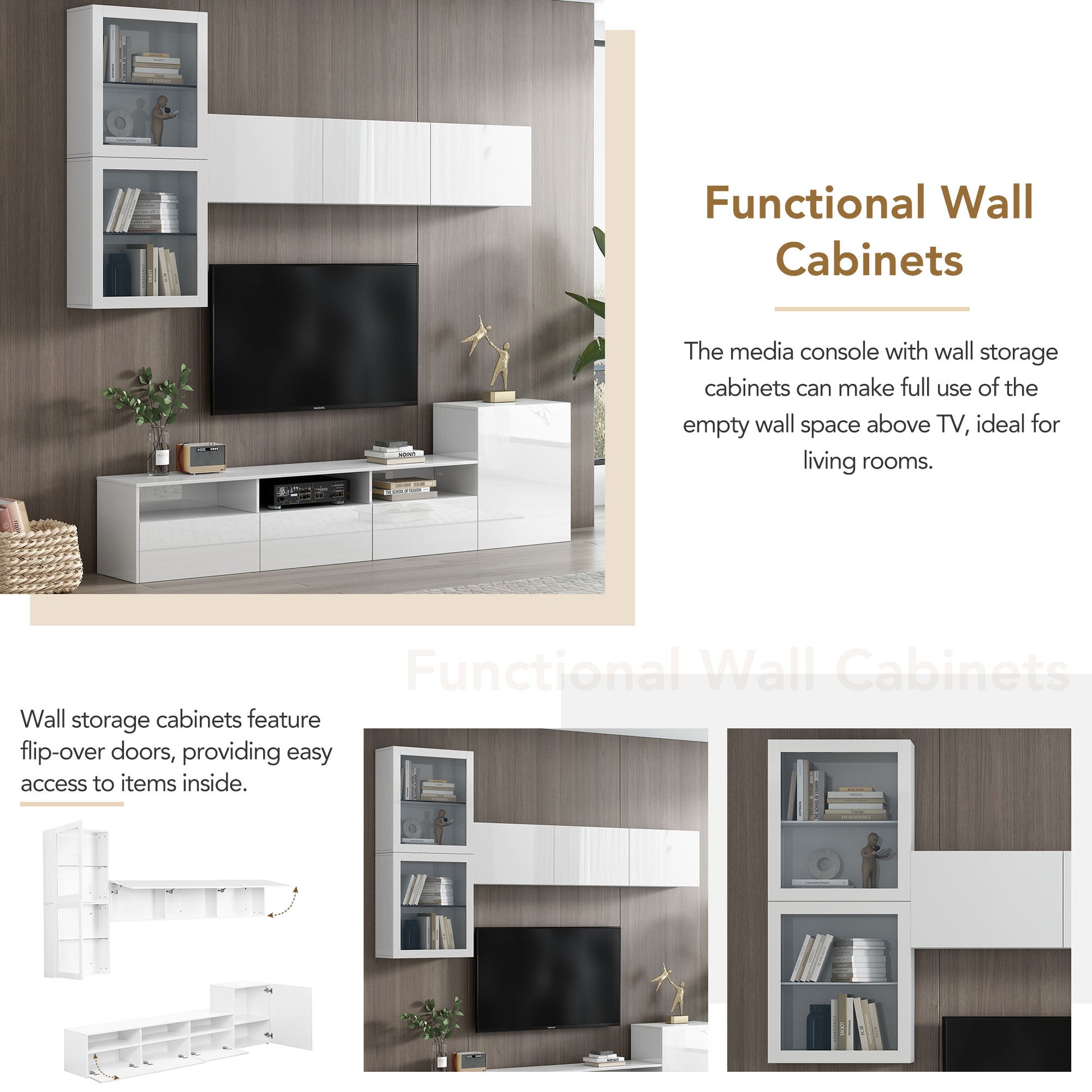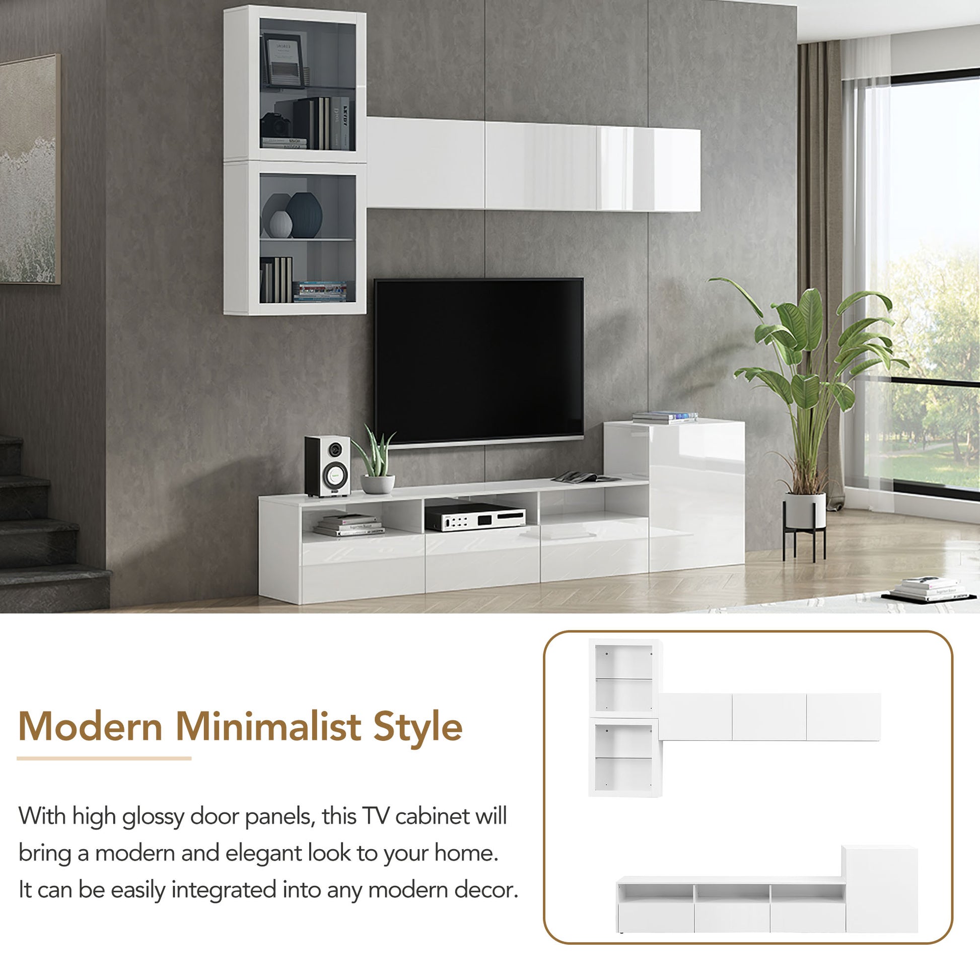 High Gloss Tv Stand With Large Storage Space, Media Console For Tvs Up To 78", Versatile Entertainment Center With Wall Mounted Floating Storage Cabinets For Living Room, White White Primary Living Space 70 79 Inches 70 79 Inches Mdf