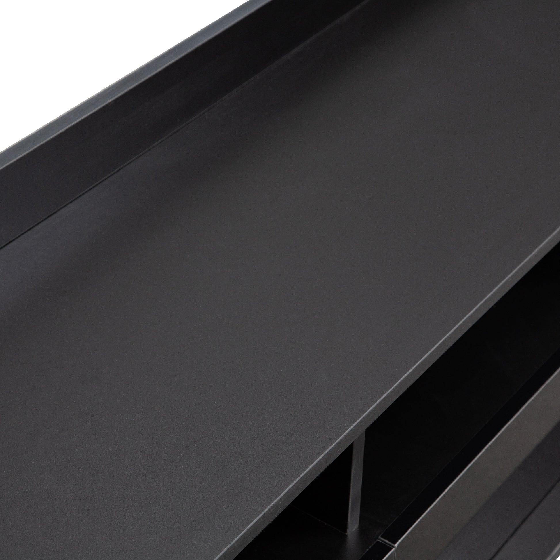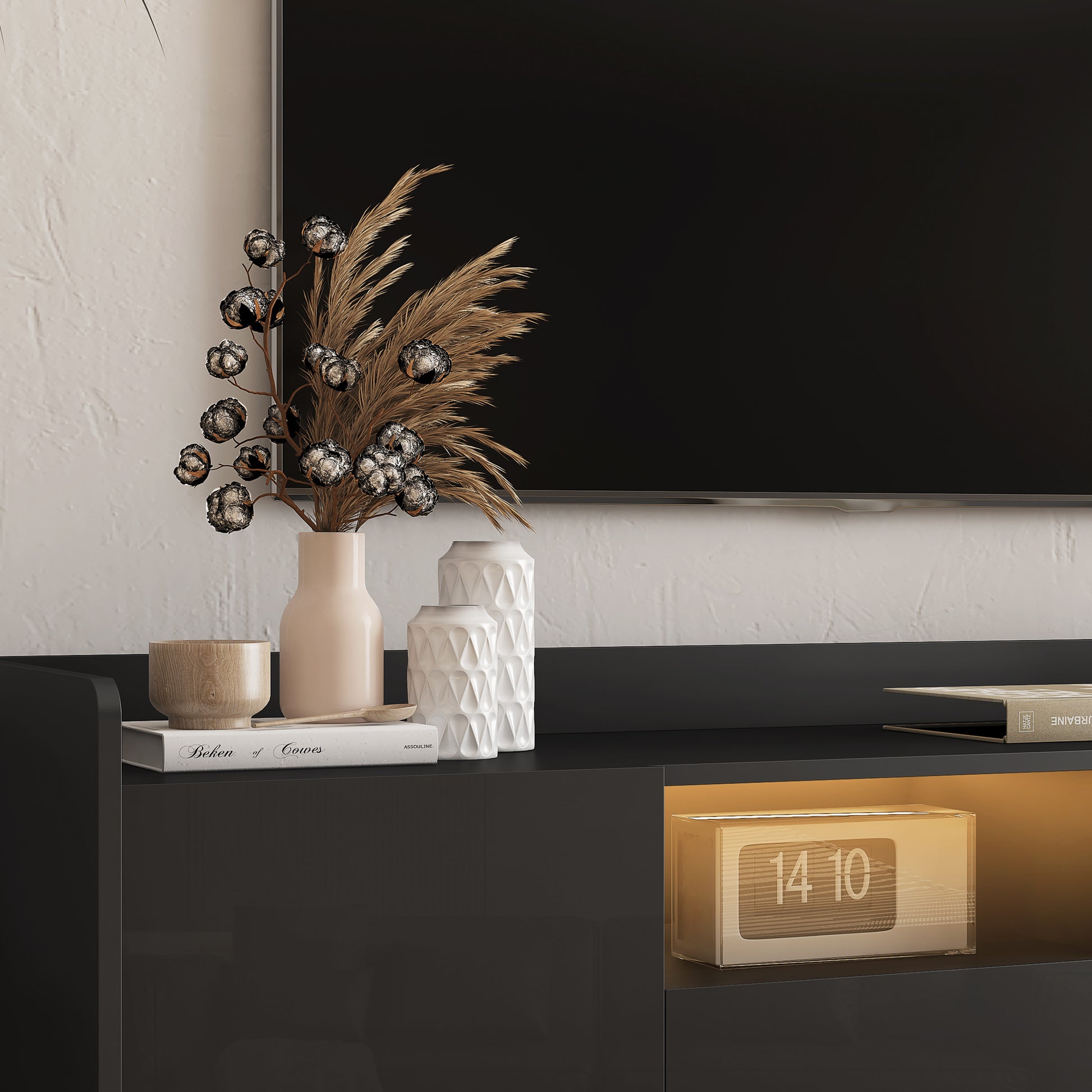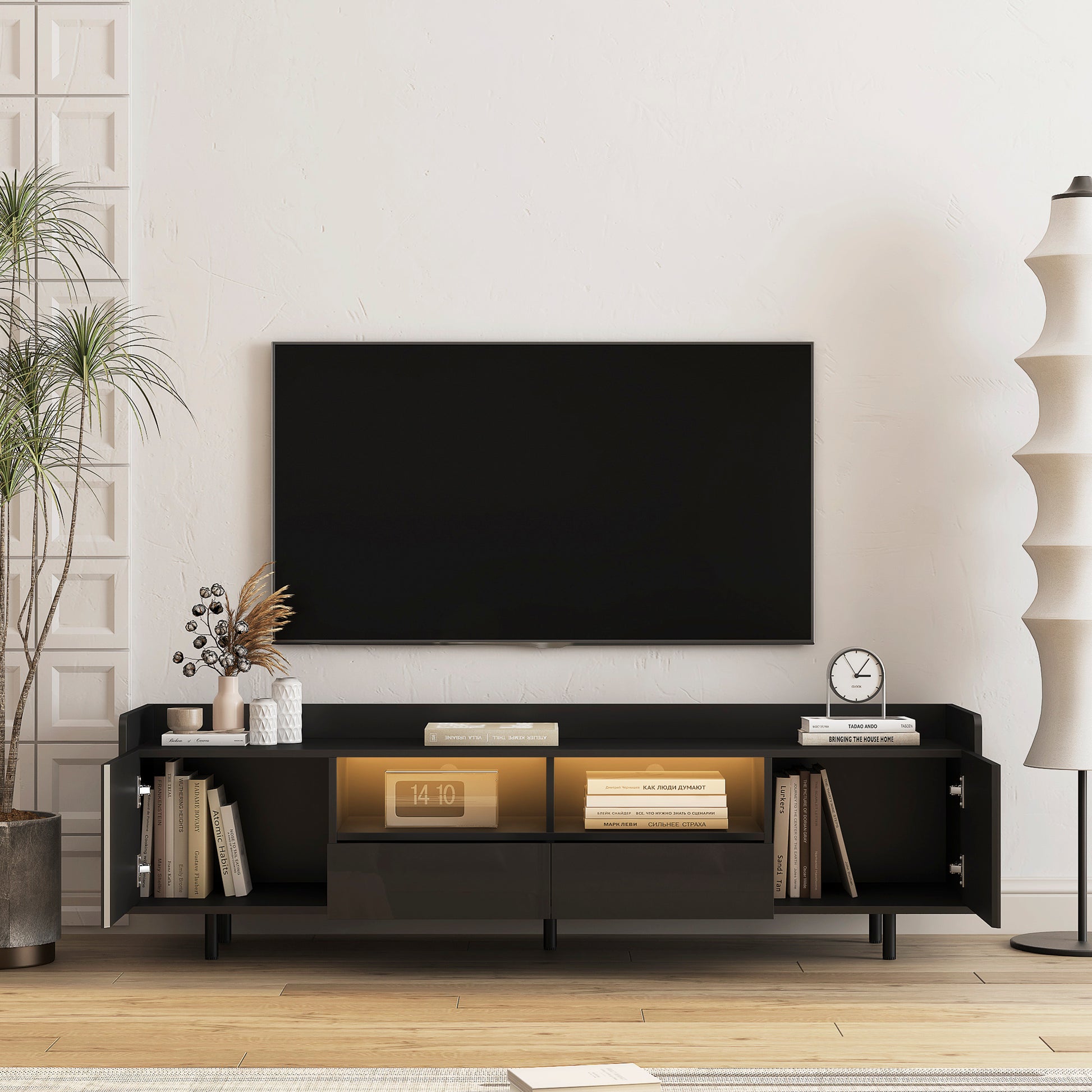 High Gloss Tv Stand With Led Light For Tvs Up To 70 Inche, Modern Home Entertainment Center With Open Shelves And Drawers, Media Console Tv Stand For Living Room Black 70 79 Inches Mdf