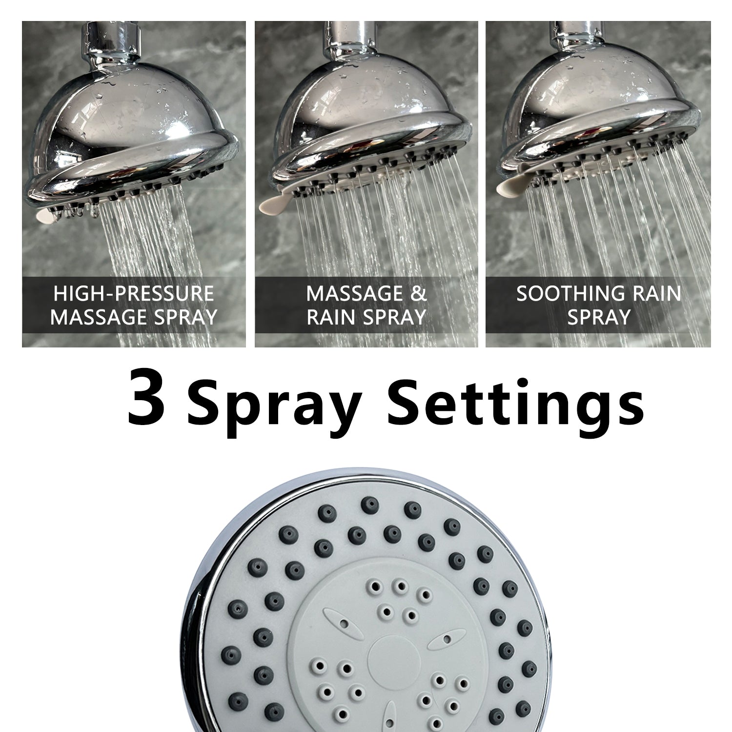 High Pressure Rain Shower Head With 3 Spray Modes, 4 Inch Fixed Bathroom Rainfall Showerhead With Adjustable Swivel Ball Joint, Bathroom Accessories Chrome Abs