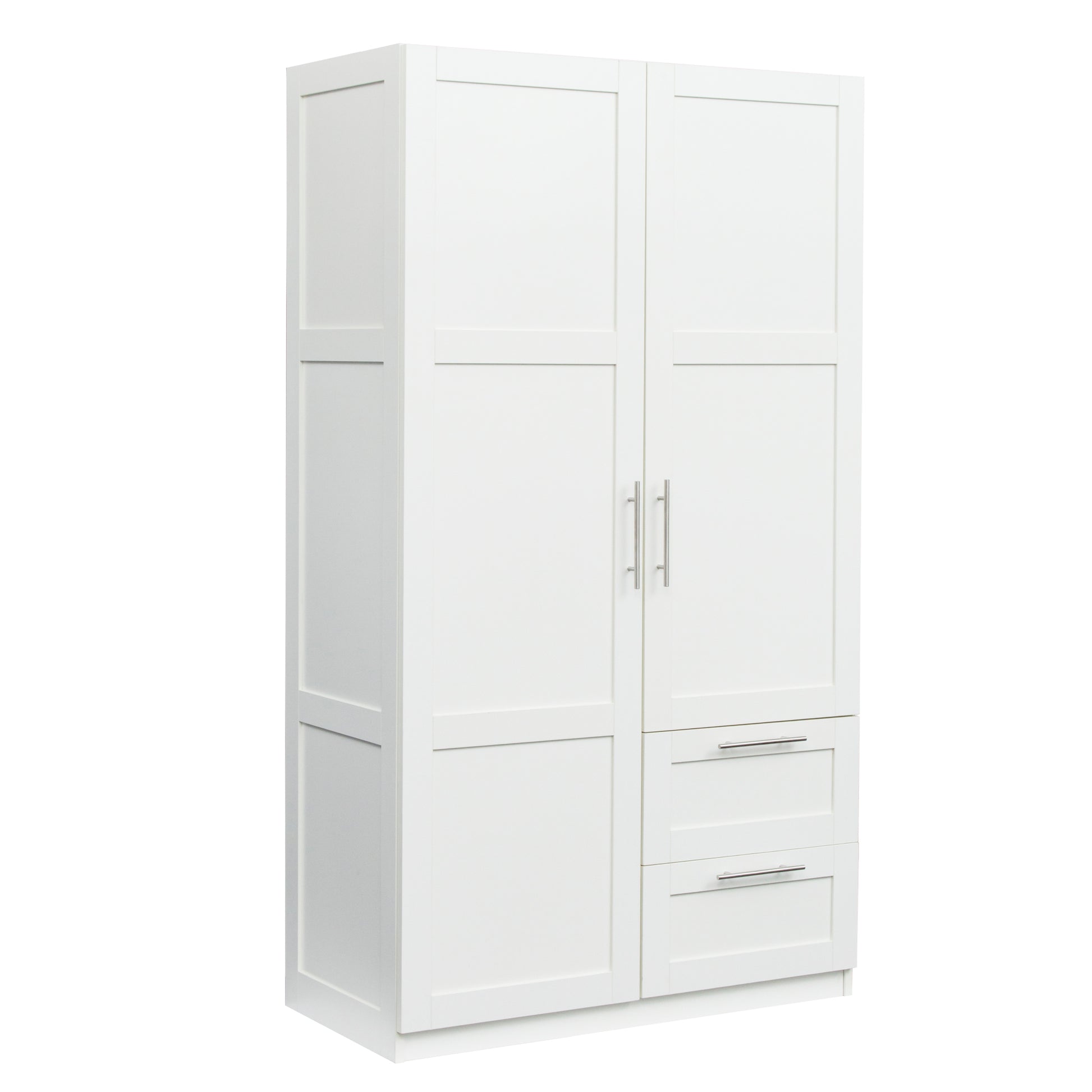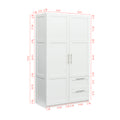 High Wardrobe And Kitchen Cabinet With 2 Doors, 2 Drawers And 5 Storage Spaces,White White Mdf