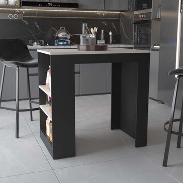 Highlands Kitchen Island With Storage Base In Black And Ibiza Marble White Engineered Wood