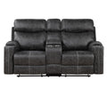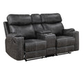 Hirah Motion Loveseat W Console & Usb Port, Dark Gray Polish Microfiber Lv02571 Dark Gray Upholstered