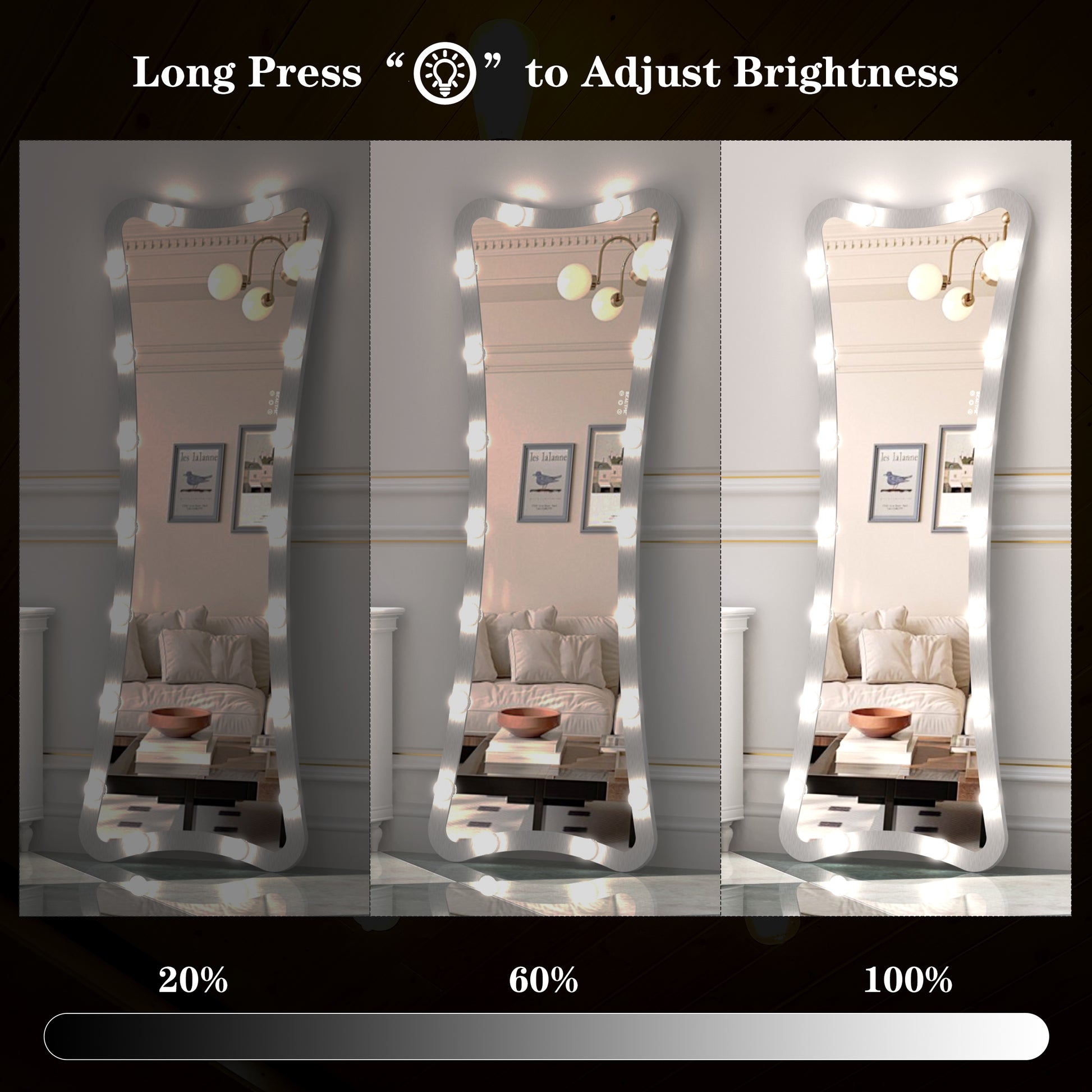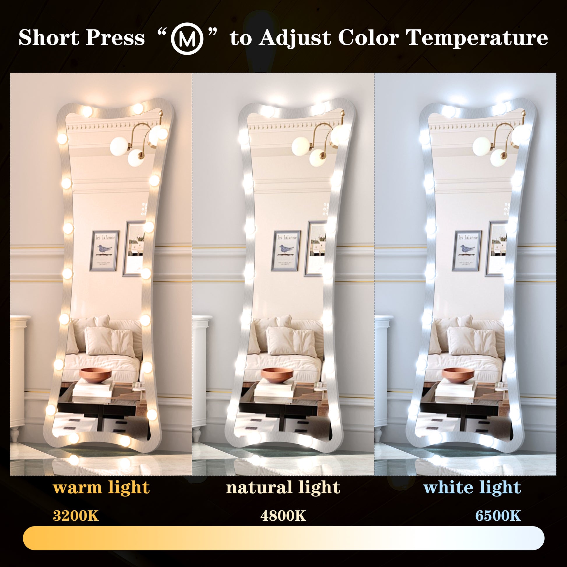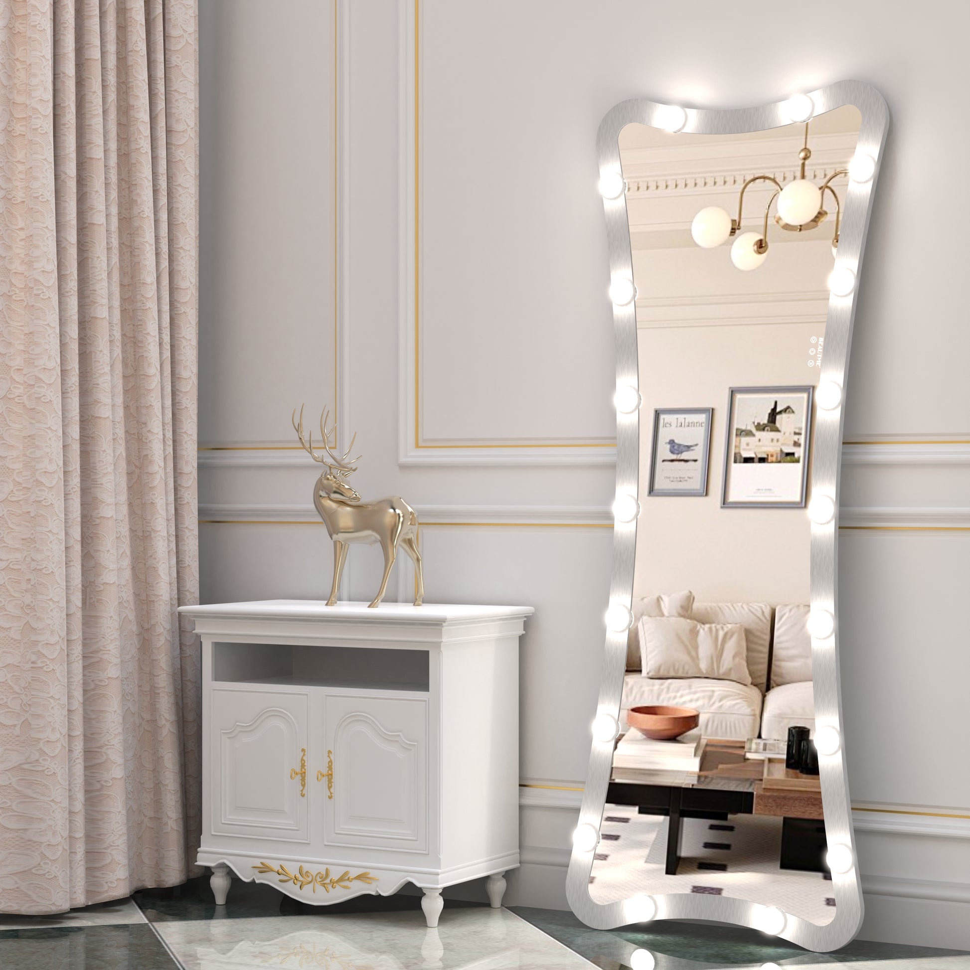 Hollywood Full Length Mirror With Lights Full Body Vanity Mirror With 3 Color Modes Lighted Standing Floor Mirror For Dressing Room Bedroom Wall Mounted Touch Control Silver 63"X24" Silver Aluminium
