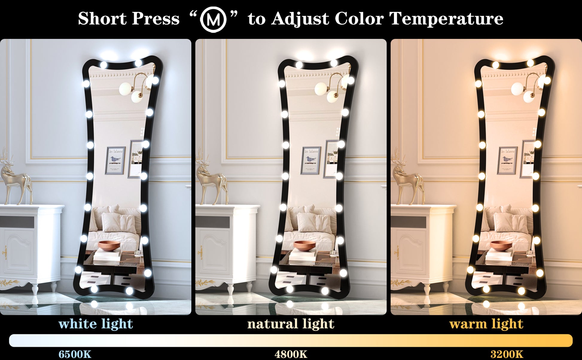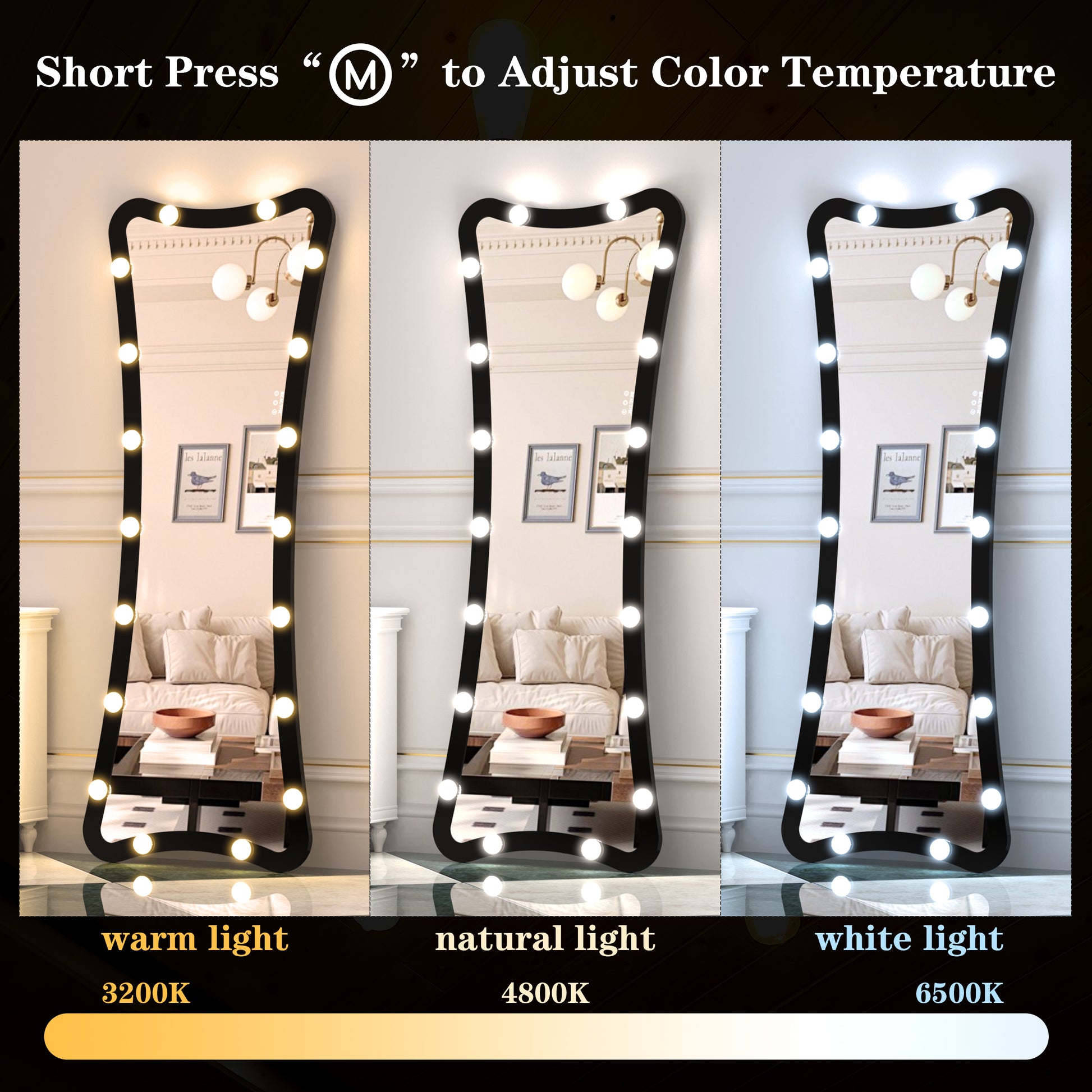 Hollywood Full Length Mirror With Lights Full Body Vanity Mirror With 3 Color Modes Lighted Standing Floor Mirror For Dressing Room Bedroom Wall Mounted Touch Control Black 63X24Inch Black Aluminium