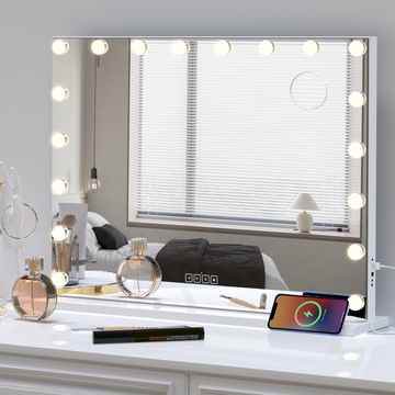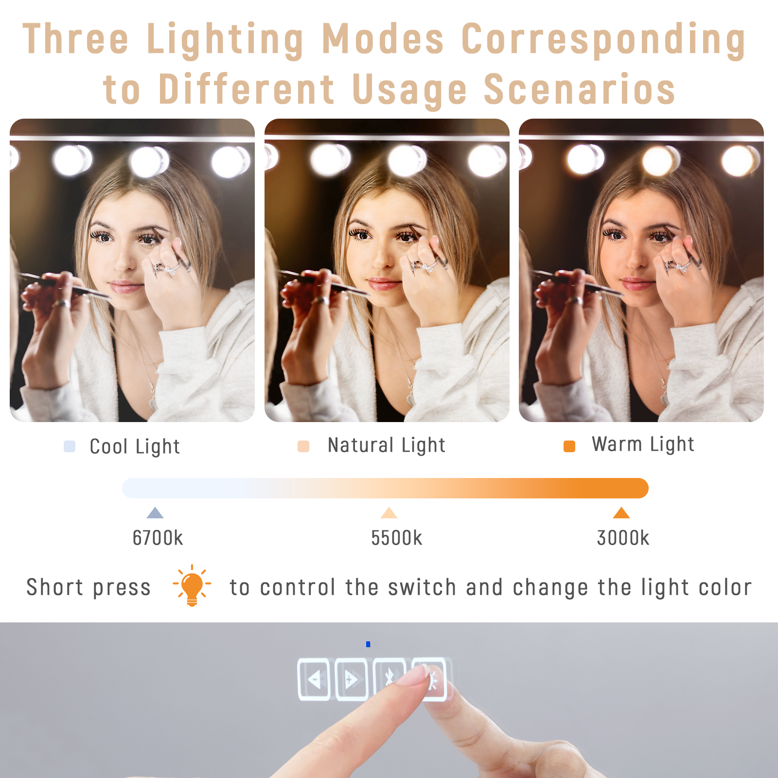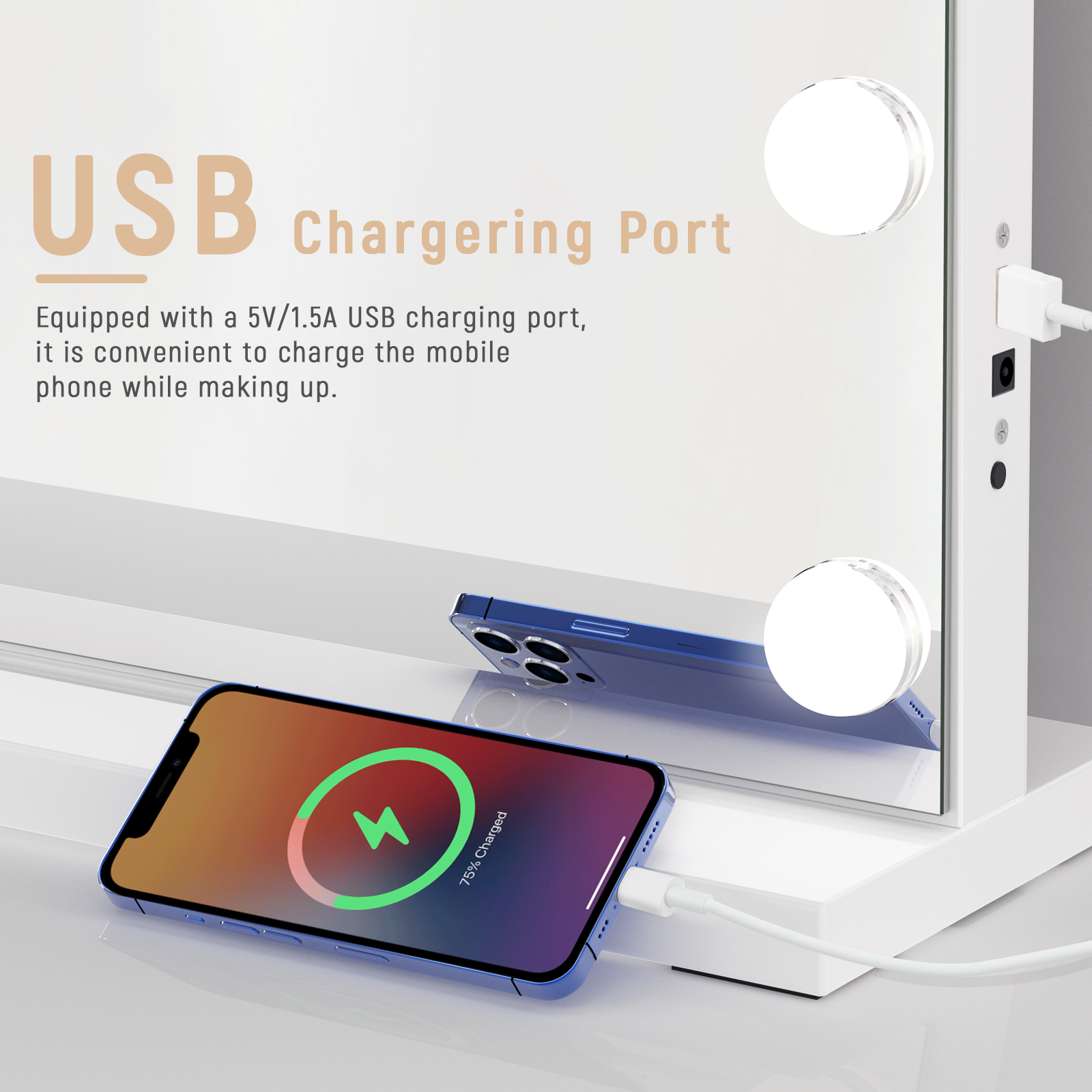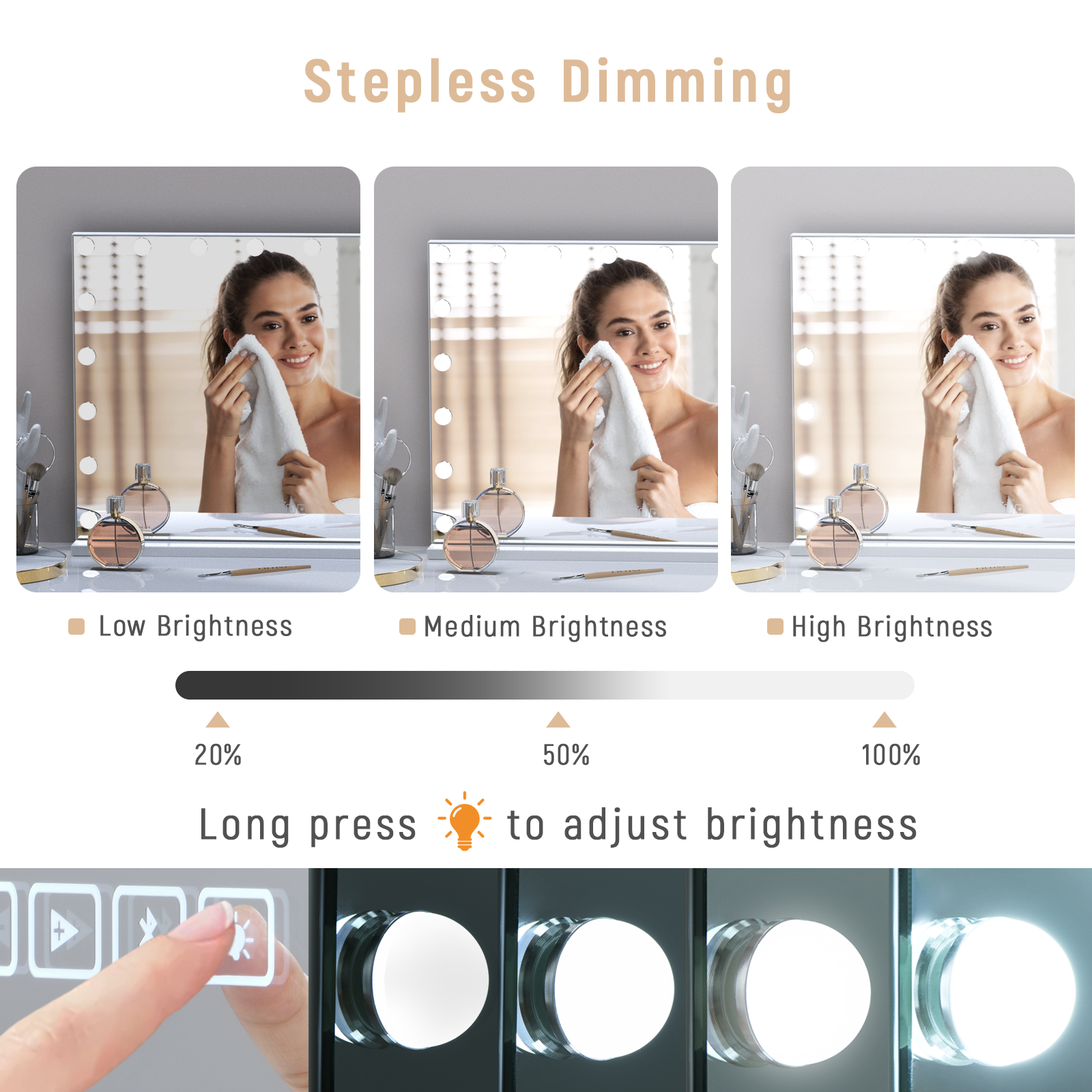 Hollywood Vanity Mirror With Speaker And Lights: 18 Bulbs, 3 Light Colors, Adjustable Brightness, Usb Charging Port Tabletop Or Wall Mountable Beauty Mirror For Bedroom White Mirror