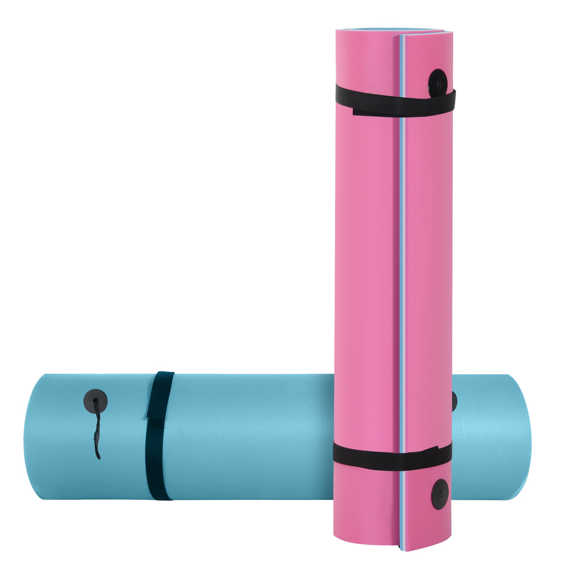 Homcom 10' X 5' Floating Mat, 3 Layer Lily Pad Swimming Pool Floating Water Mat, Thick And Durable Water Activities Mat For Lake, Oceans Blue Pink Plastic