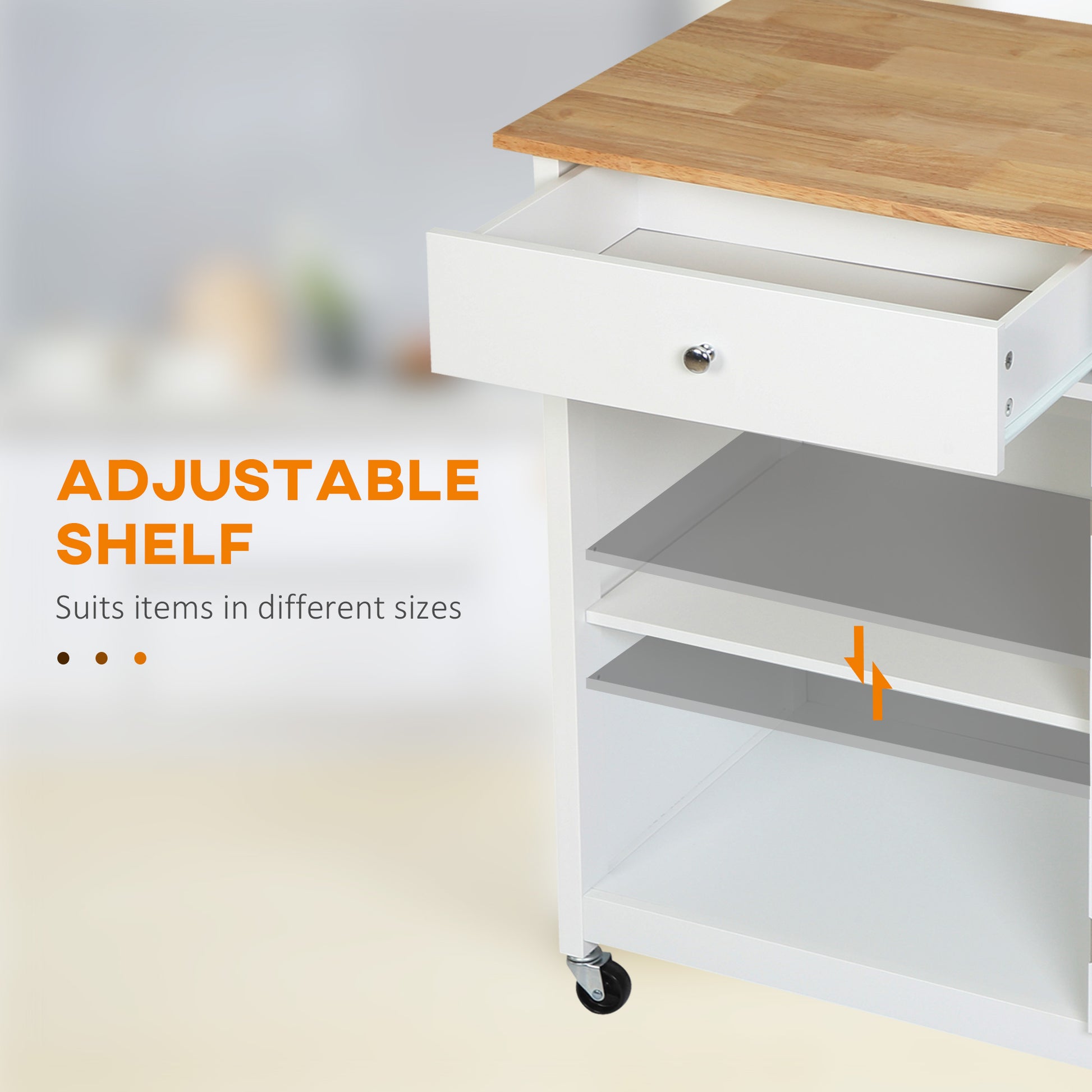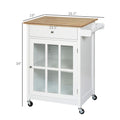 Homcom 27" Rolling Kitchen Island Cart With Drawer And Glass Door Cabinet, Kitchen Trolley With Adjustable Shelf And Towel Rack, White White Rubber Wood
