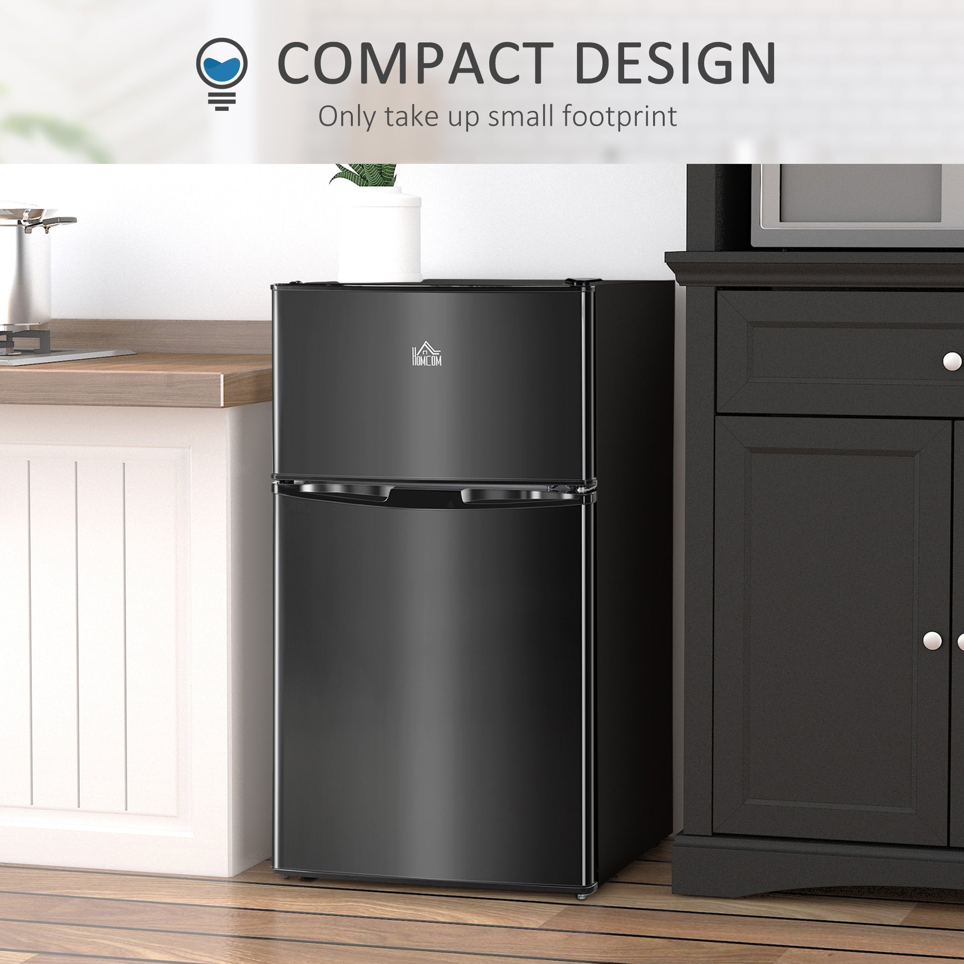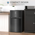 Homcom 3.2 Cu.Ft Mini Fridge With Freezer, Double Door Compact Refrigerator With Adjustable Thermostat, Shelf And Reversible Door For Bedroom, Dorm, Home Office, Energy Efficient, Black Black Steel