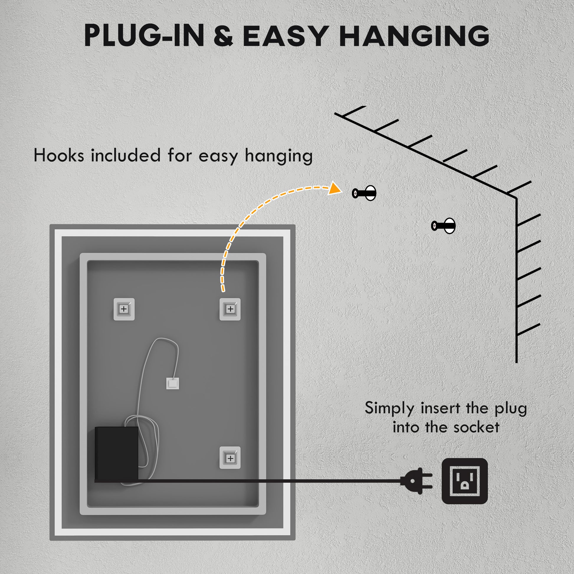 Homcom 36" X 28" Dimmable Bathroom Mirror With Lights, 3 Colors & Defogging Silver Tempered Glass