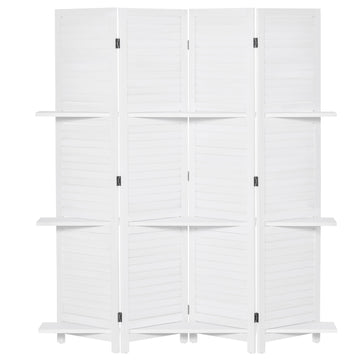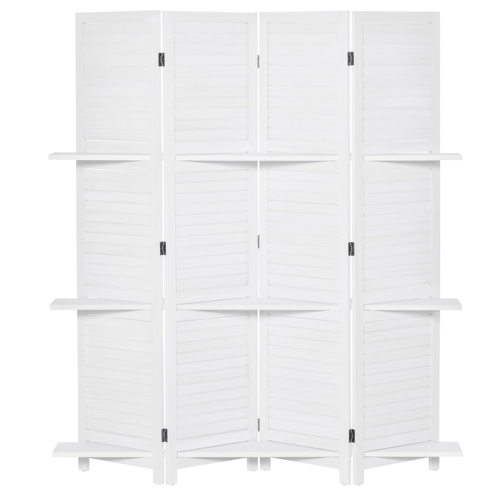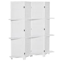 Homcom 4 Panel 67" Tall Wood Privacy Screen Room Divider With 3 Display Shelves, And Folding Storage For Bedroom Or Home Office, White White Wood