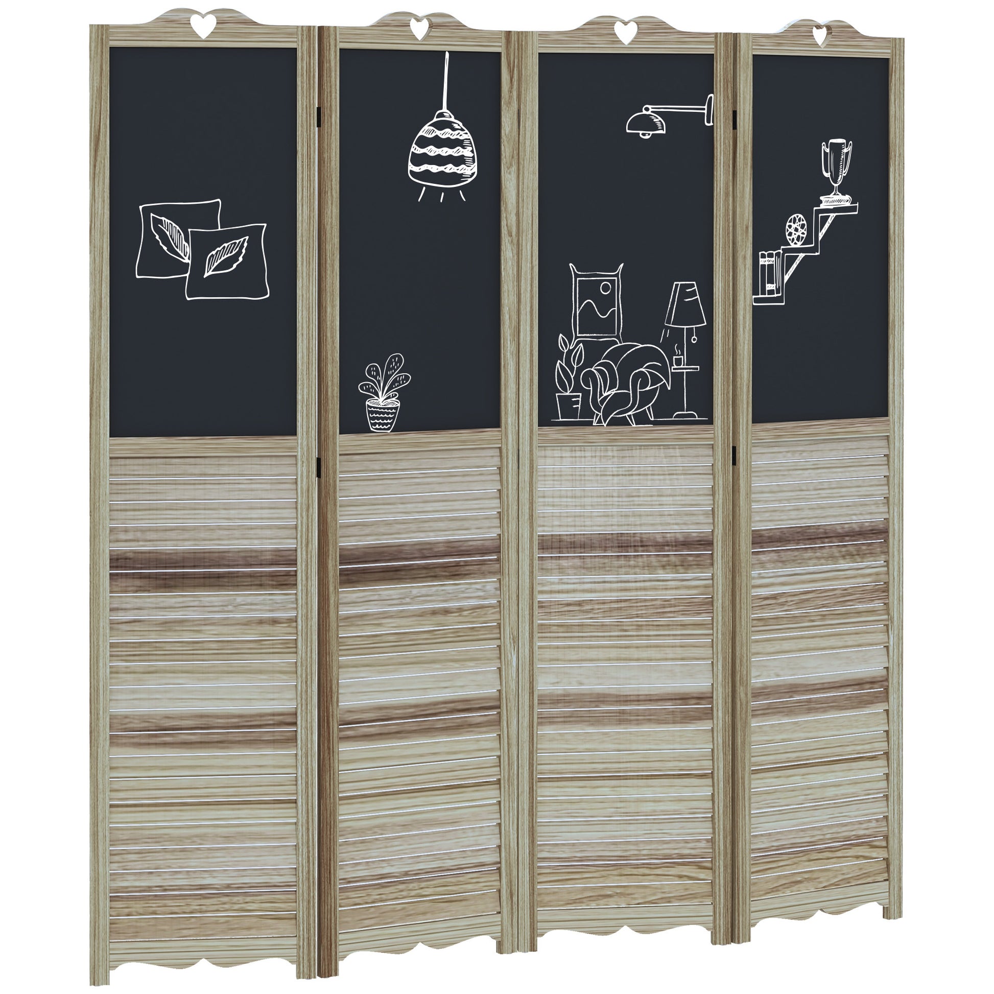 Homcom 4 Panel Folding Room Divider With Blackboard, 5.5 Ft Tall Freestanding Privacy Screen Panels For Bedroom Or Office, White White Wood
