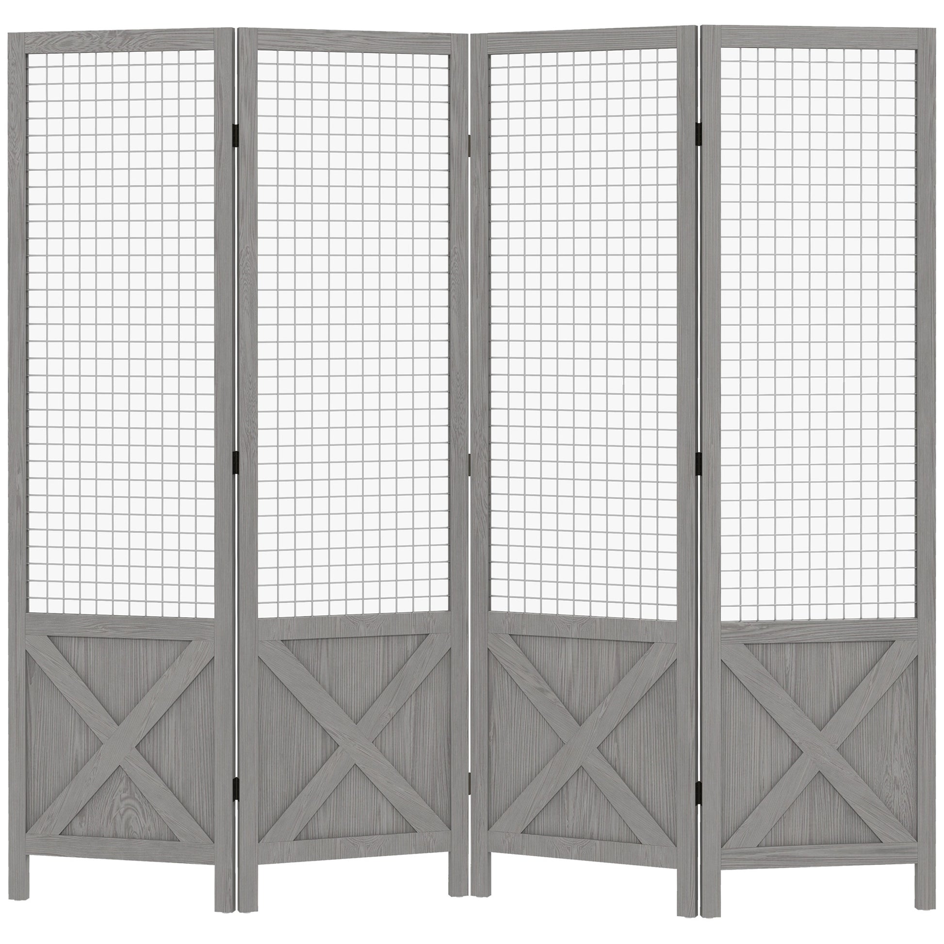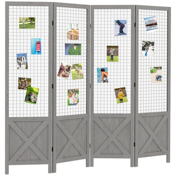Homcom 4 Panel Room Divider, 4.7 Ft Tall Wood Indoor Portable Folding Privacy Screens, Partition Wall Divider For Home Office, Distressed Gray Gray Wood