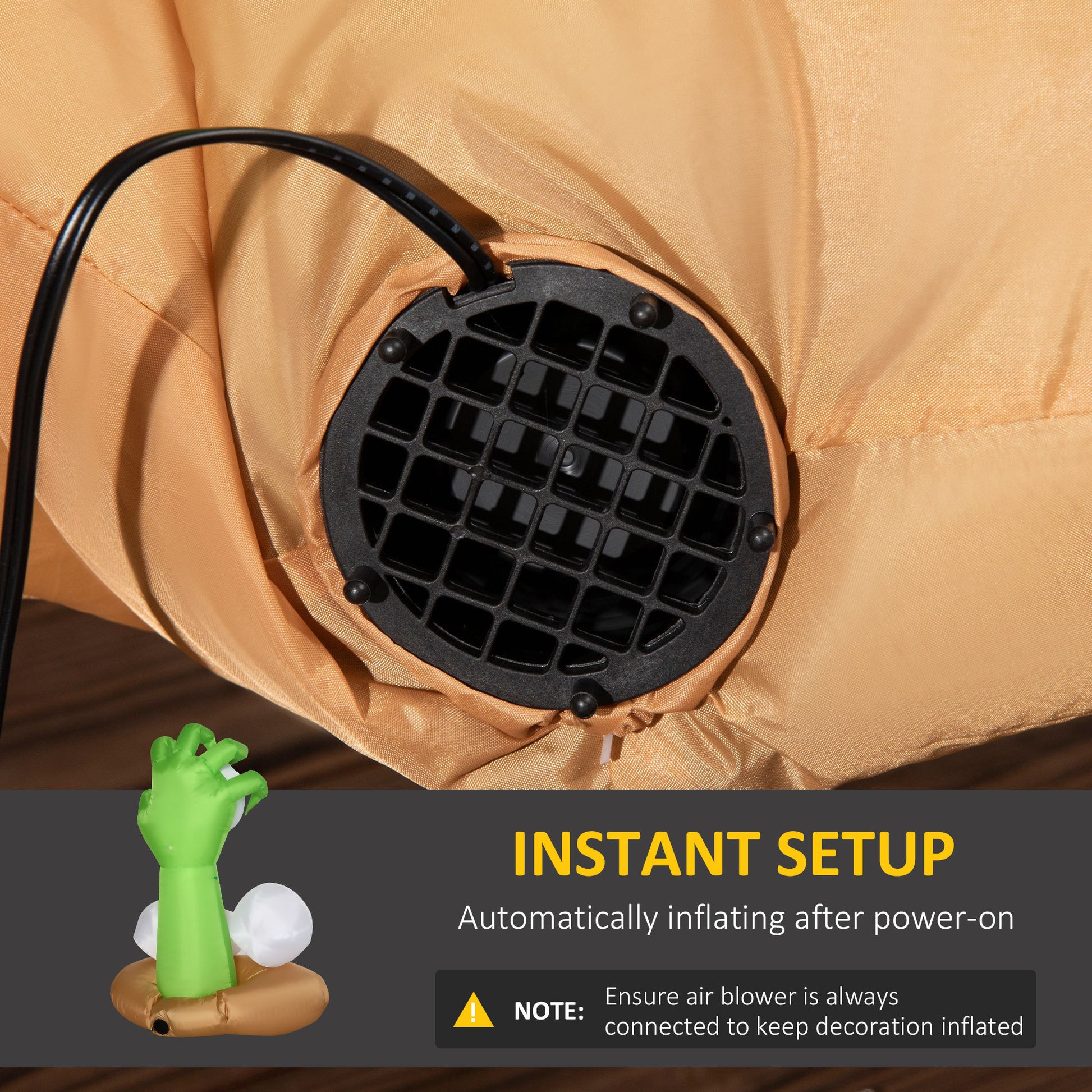 Homcom 4Ft Halloween Inflatables Outdoor Decorations Monster Hand Grasping Bloodshot Eyeballs, Blow Up Led Yard Decor For Garden, Lawn, Party, Holiday, Waterproof Green Polyester