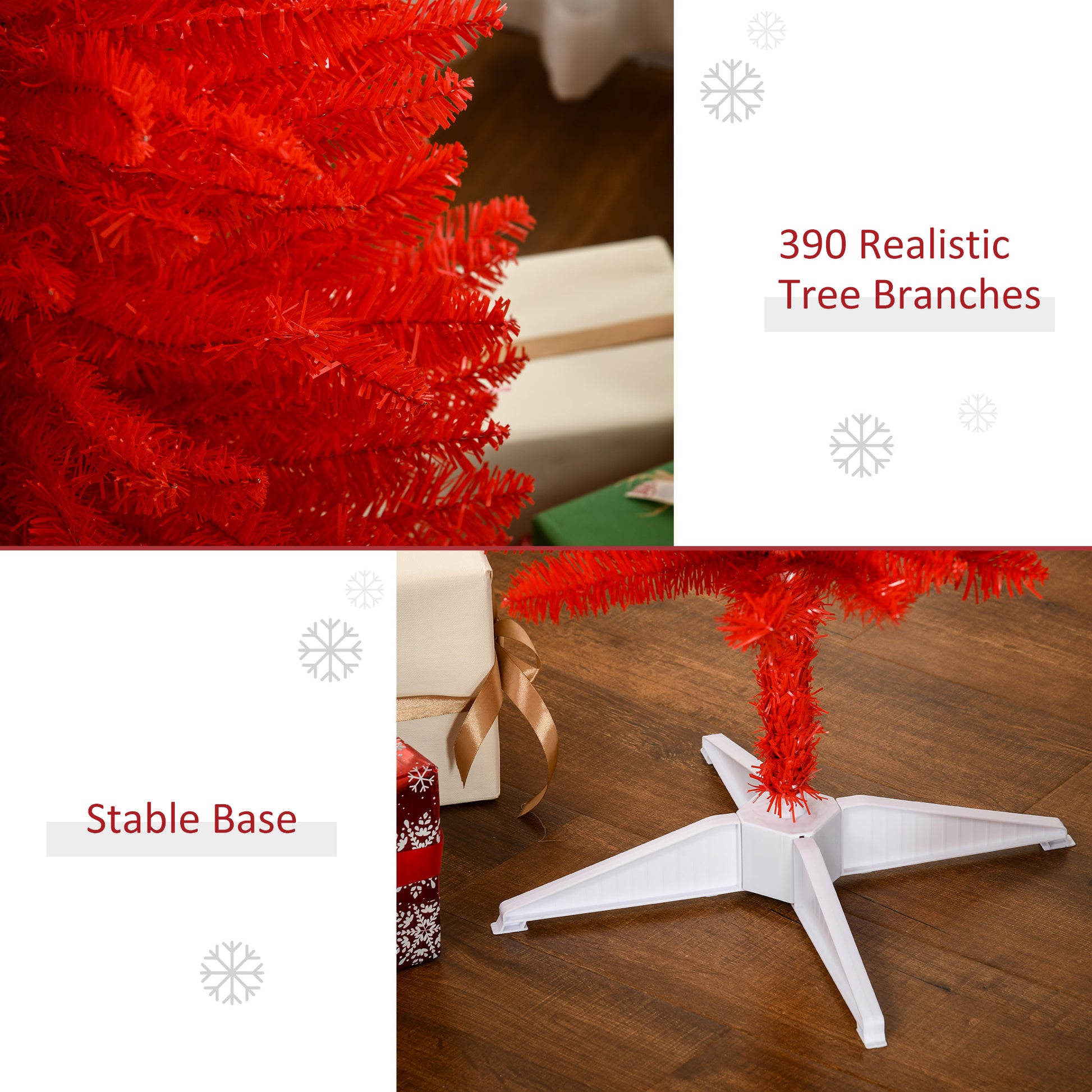 Homcom 6' Artificial Pencil Christmas Tree, Slim Xmas Tree With 390 Realistic Branch Tips And Plastic Stand, Red Green Plastic