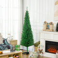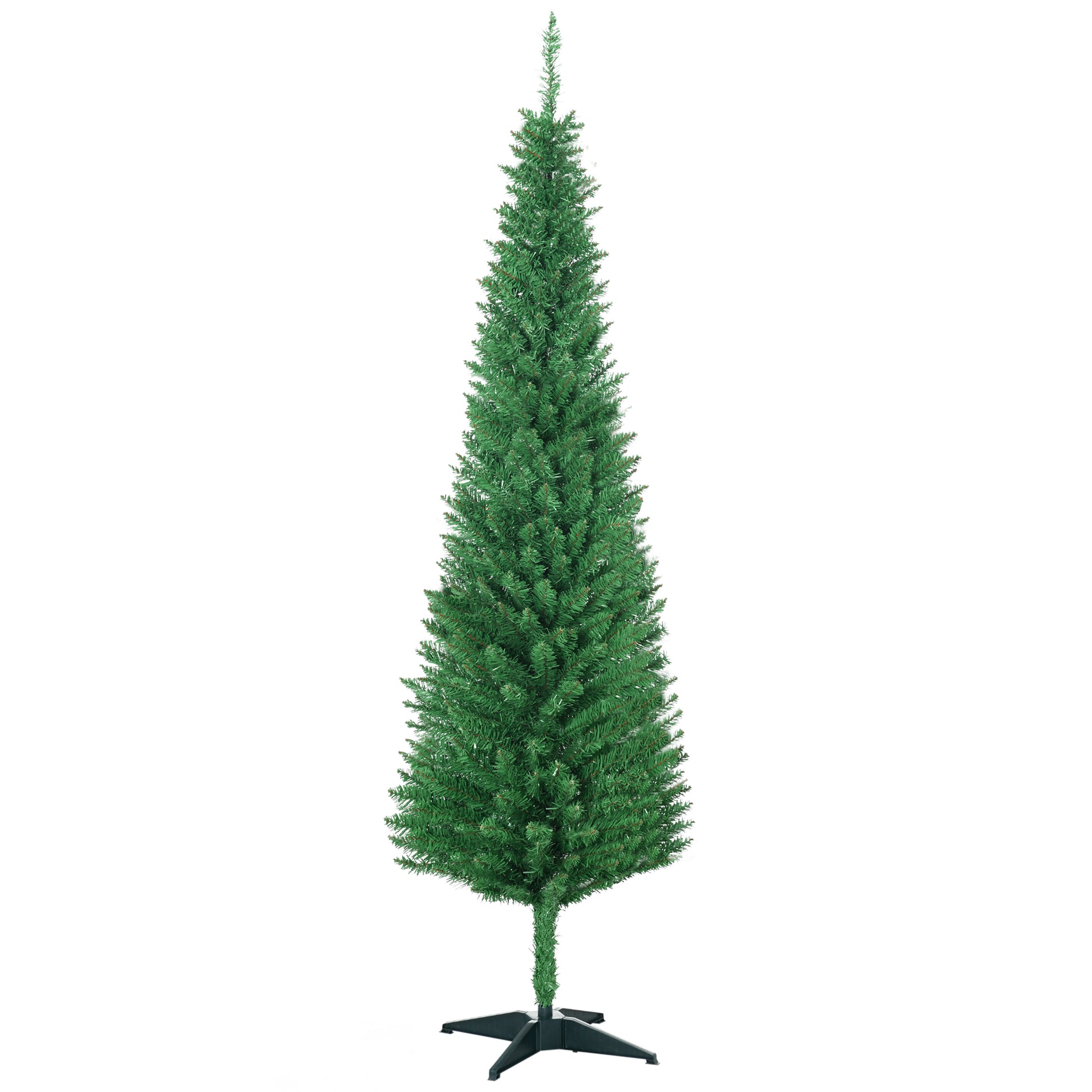 Homcom 6' Artificial Pencil Christmas Tree, Slim Xmas Tree With 390 Realistic Branch Tips And Plastic Stand, Light Green Light Green Plastic