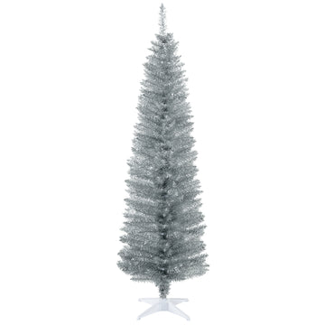 Homcom 6' Artificial Pencil Christmas Tree, Slim Xmas Tree With 390 Realistic Branch Tips And Plastic Stand, Silver Silver Plastic