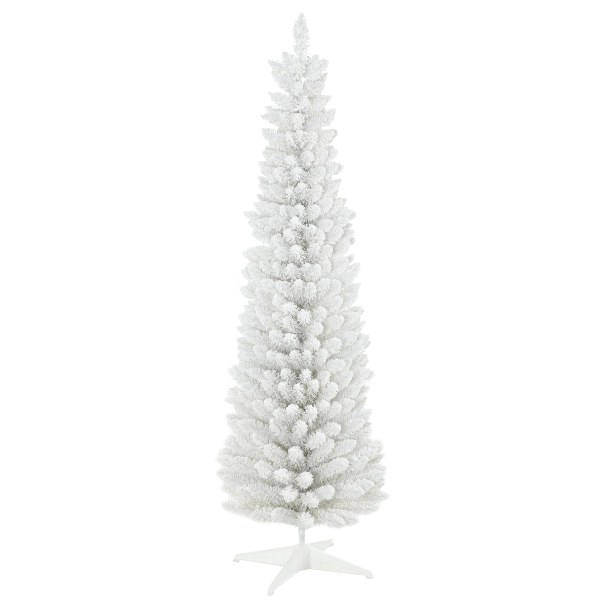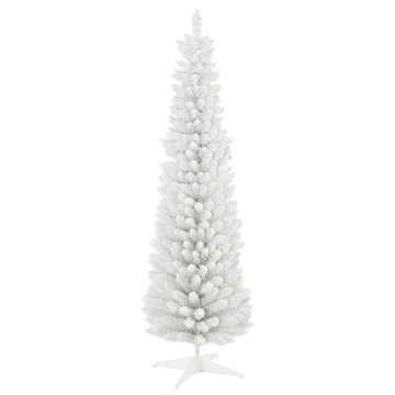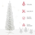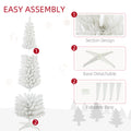 Homcom 6' Snow Flocked Artificial Pencil Christmas Tree, Slim Xmas Tree With Realistic Branches And Plastic Base Stand For Indoor Decoration, White White Plastic