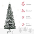 Homcom 6' Tall Unlit Snow Flocked Slim Artificial Christmas Tree With Realistic Branches And 492 Tips Green Plastic