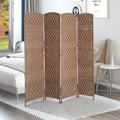Homcom 6' Tall Wicker Weave 4 Panel Room Divider Privacy Screen Natural Natural Wood