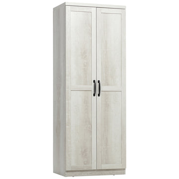 Homcom 63" 2 Door Kitchen Pantry, Freestanding Storage Cabinet With 5 Tier Shelving And 2 Adjustable Shelves For Dining Room, Antique White White Particle Board