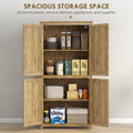 Homcom 64" Rattan Kitchen Storage Cabinet With Adjustable Shelf, Natural Natural Wood Particle Board
