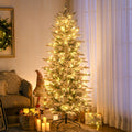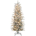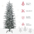 Homcom 6Ft Tall Prelit Artificial Christmas Tree Holiday D Cor With 636 Snow Flocked Branches, 250 Warm Yellow Clear Lights, Auto Open, Extra Bulb Green Plastic